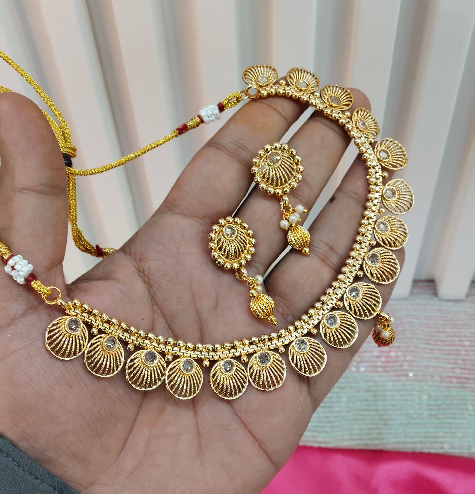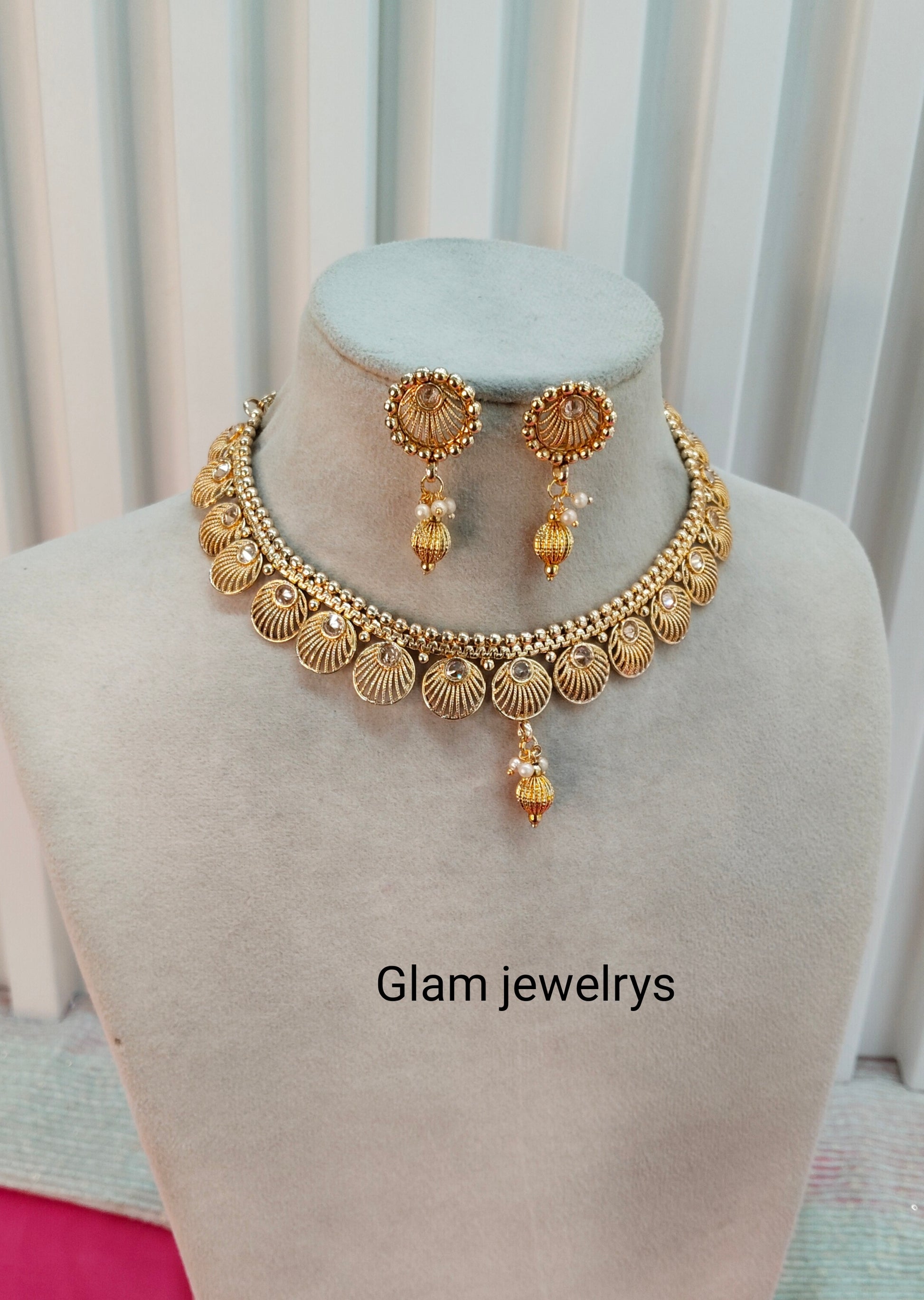 *Gold Polki Necklace set with earrings
