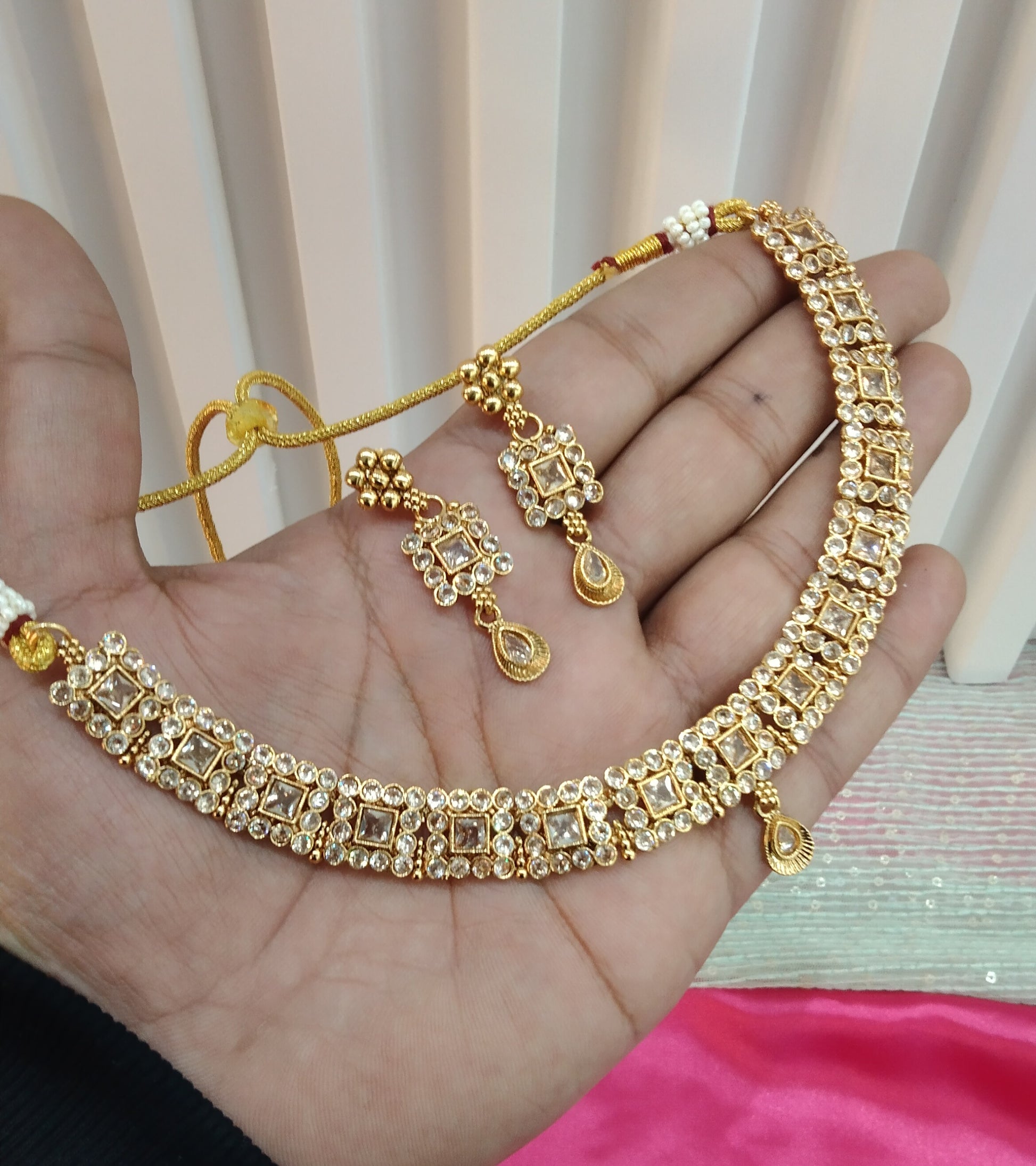 Indian Jewellery Pink Kundan Choker Set/ kundan choker hello Set