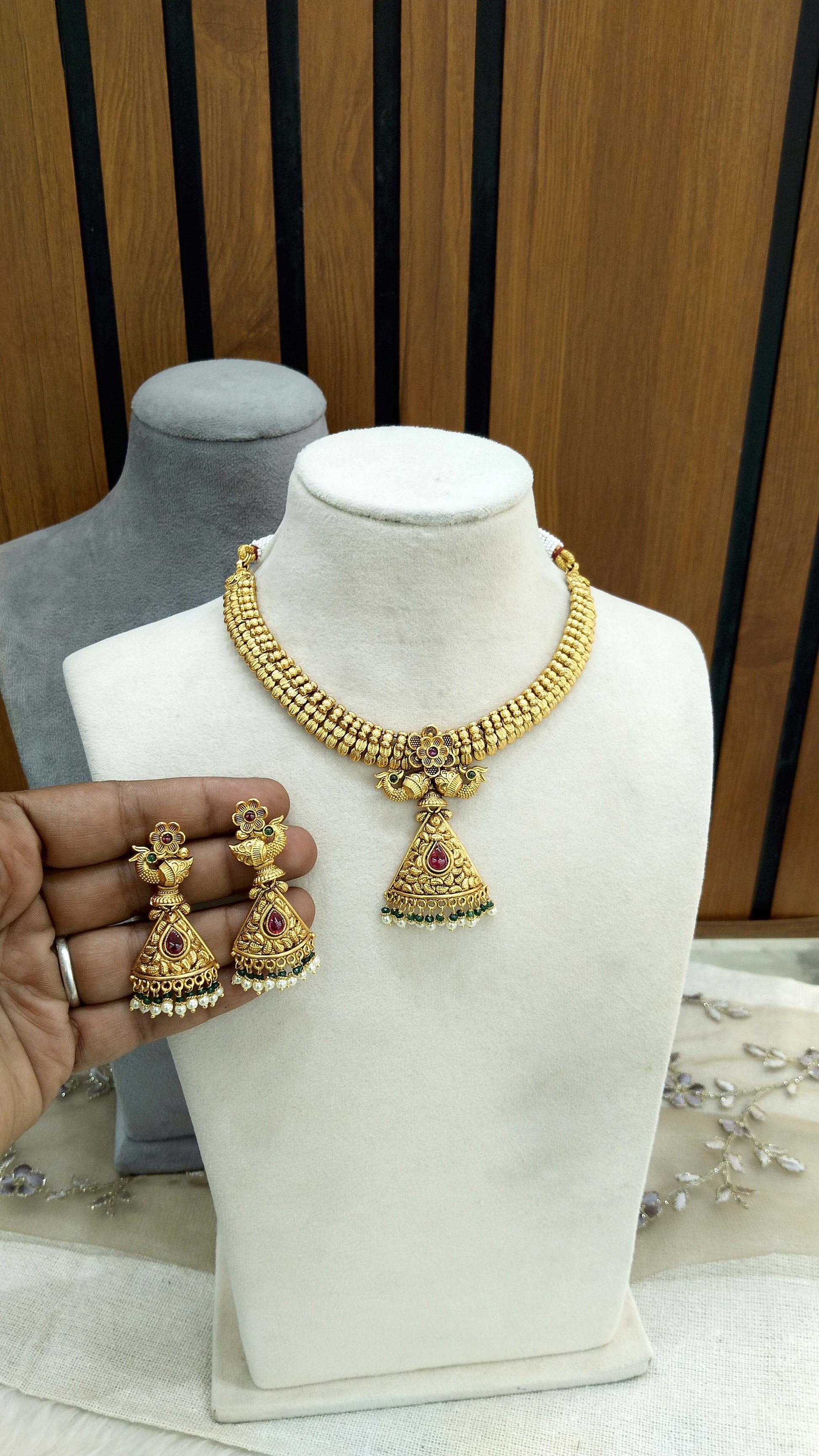 *Light weight gold necklace Set with earrings as shown in the pic.