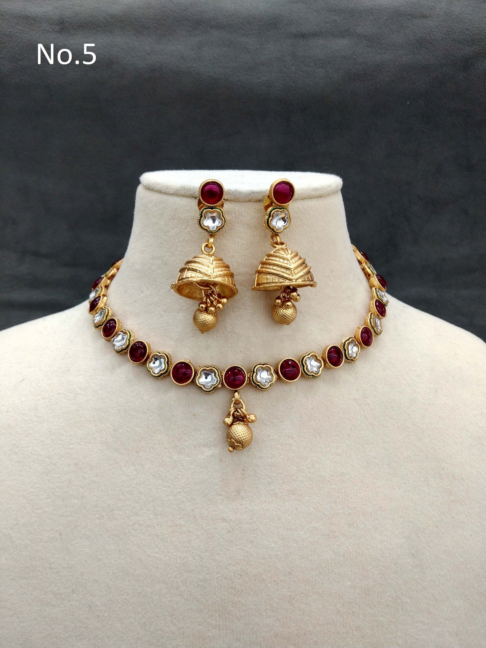 Indian Jewellery Pink Kundan Choker Set/ kundan choker hello Set
