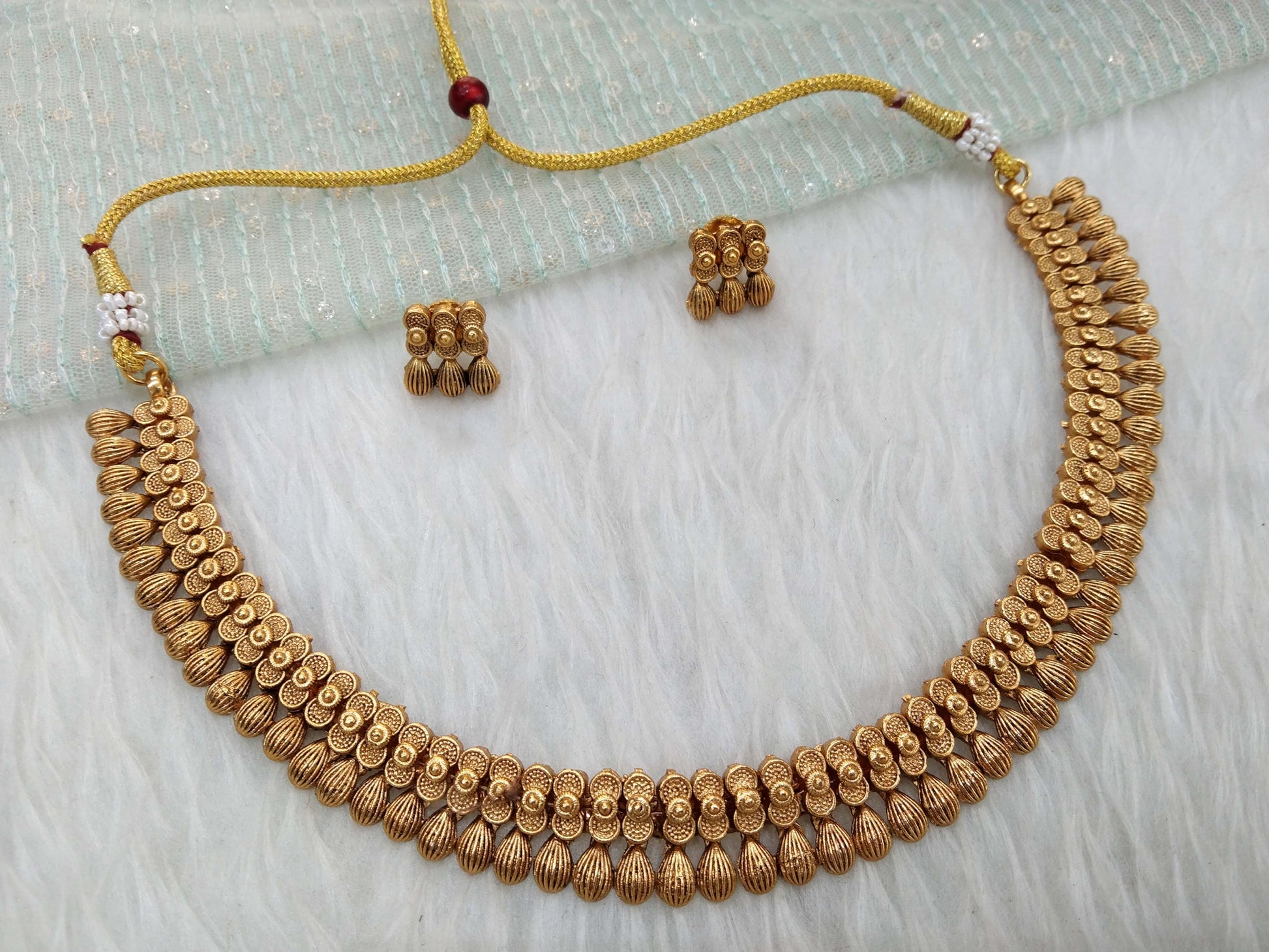 *Light weight gold necklace Set with earrings as shown in the pic.