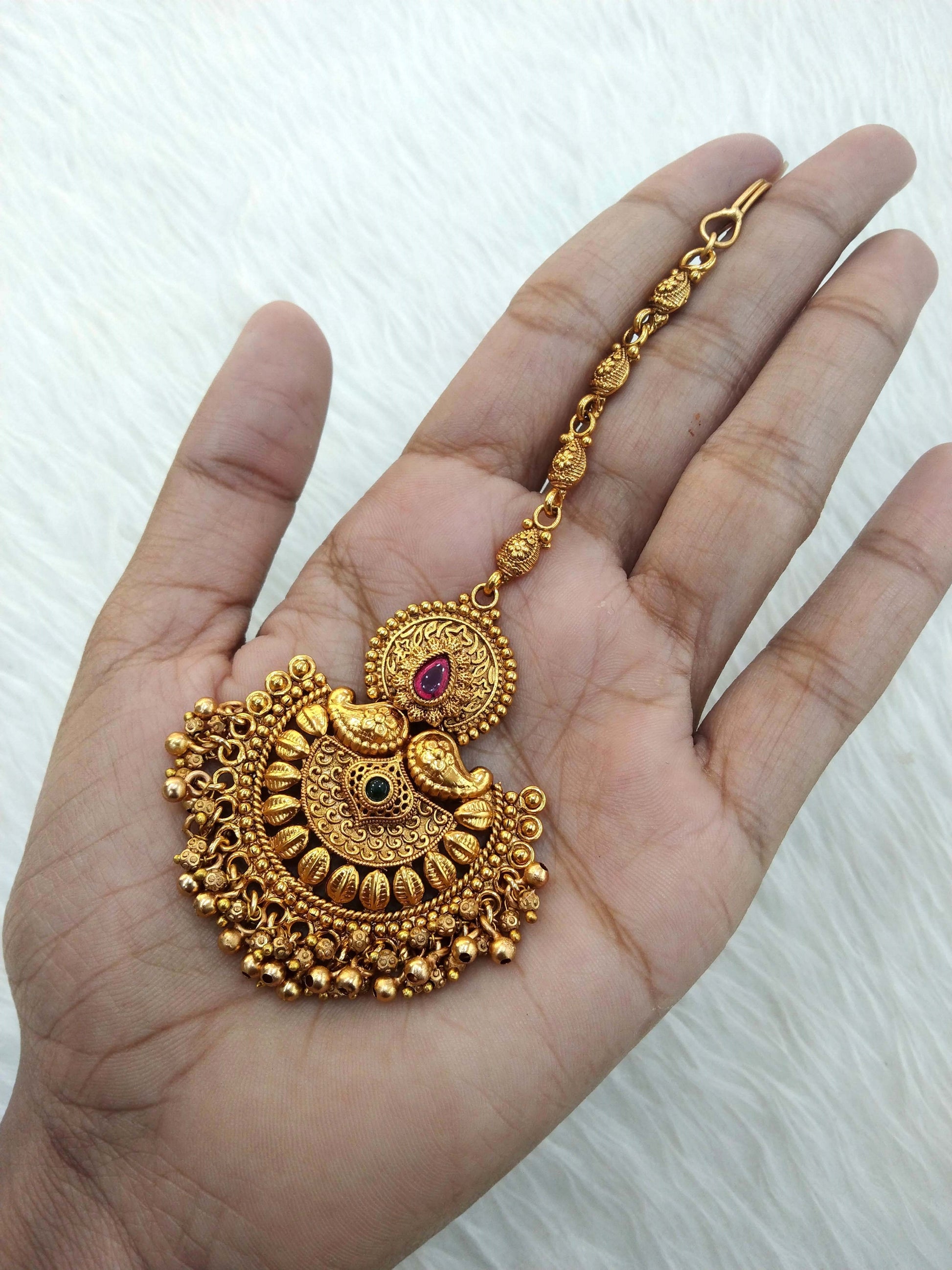 Gold polki Ruby Green Tika Tikka Jewellery Indian Headpiece Tikka toni Jewellery