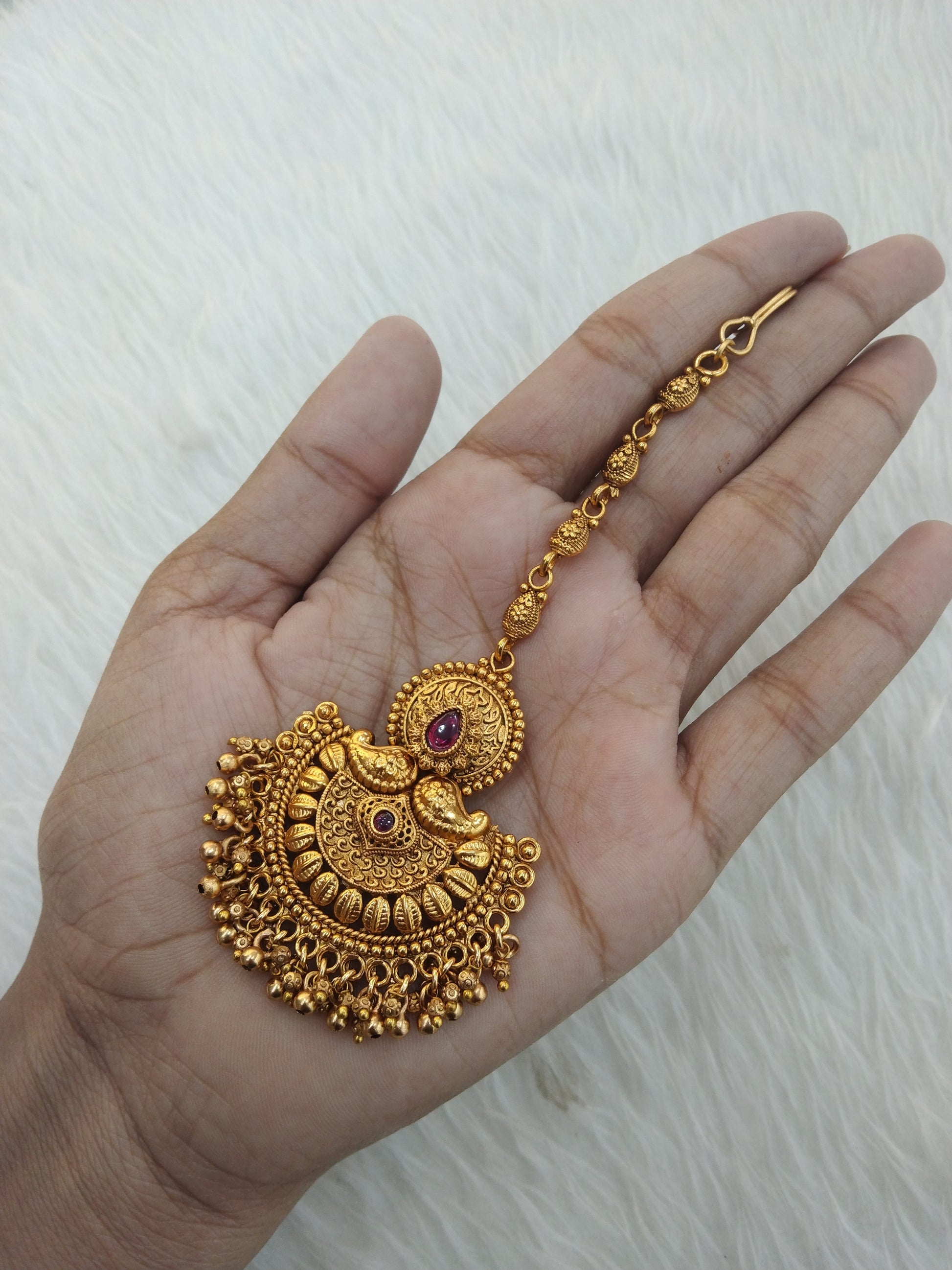 Gold polki Ruby Tika Tikka Jewellery Indian Headpiece Tikka toni Jewellery