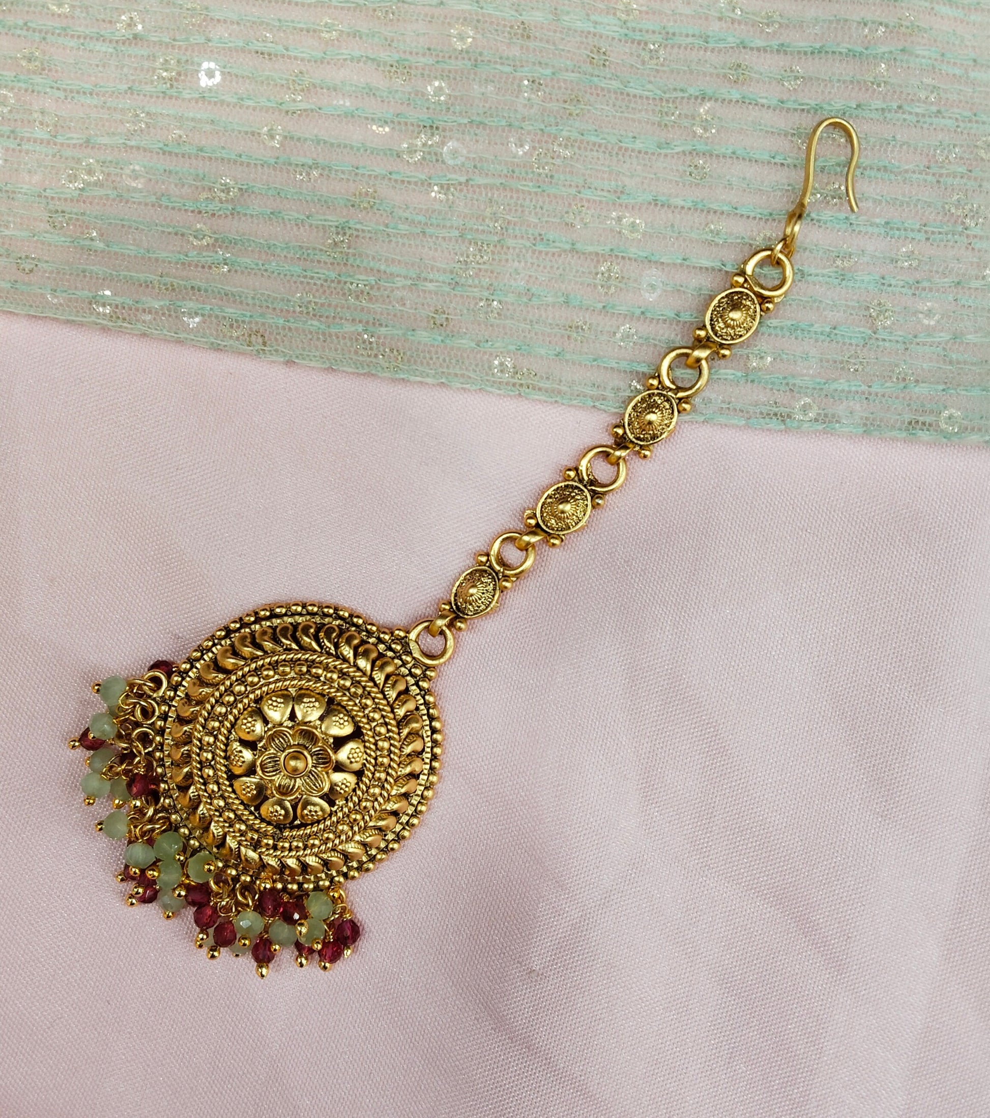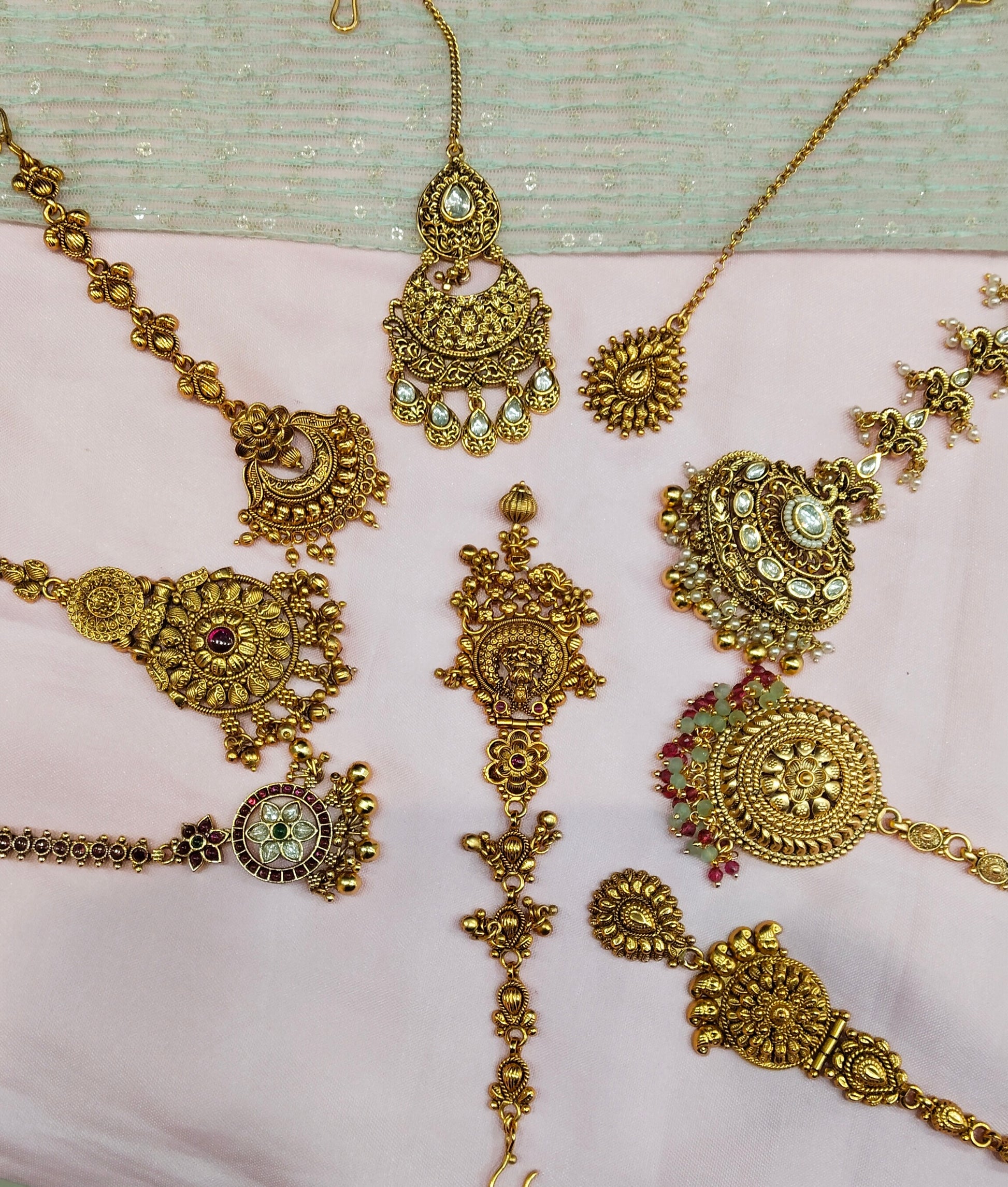 Gold polki Tikka Jewellery Headpiece Gurpiar Set