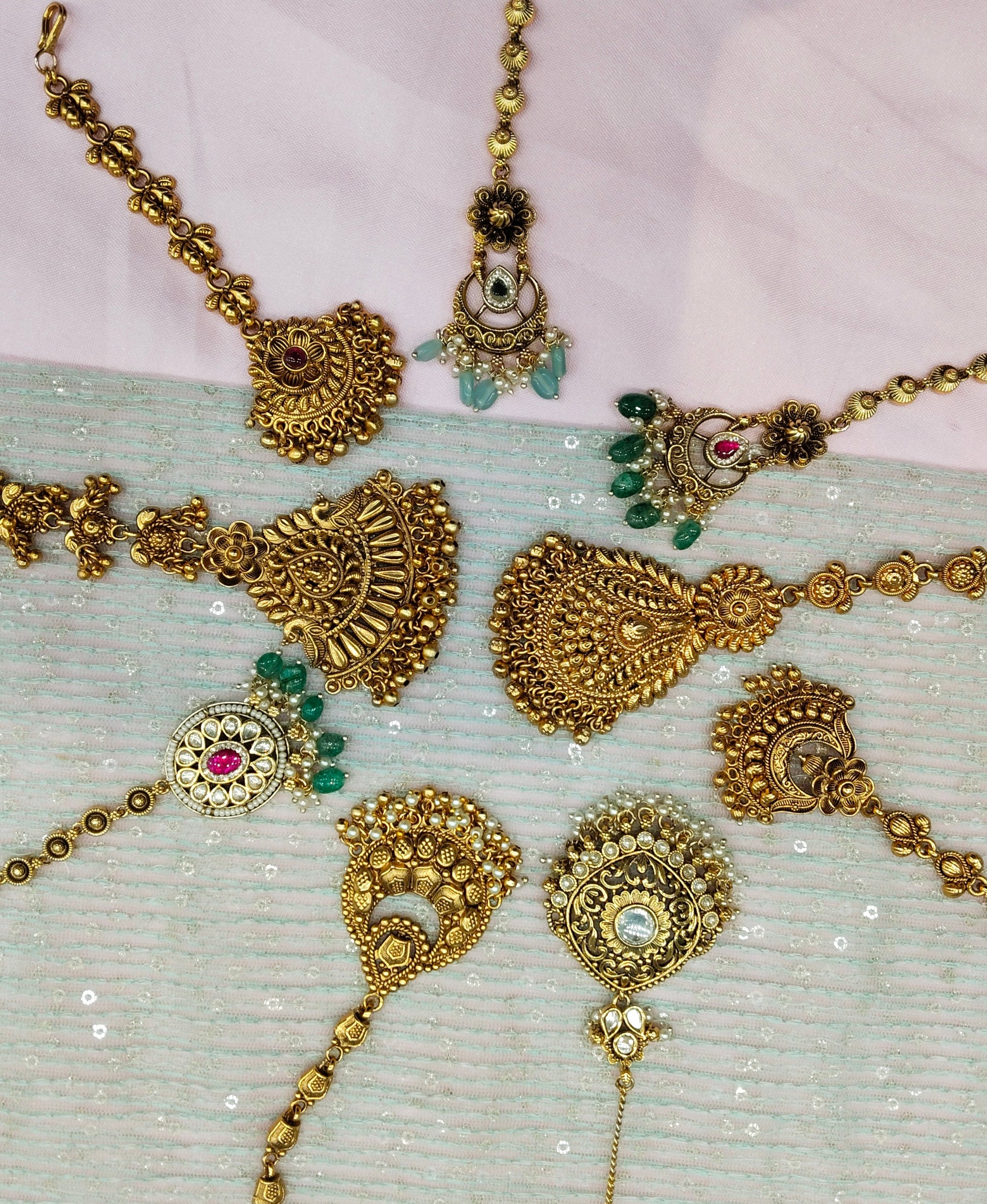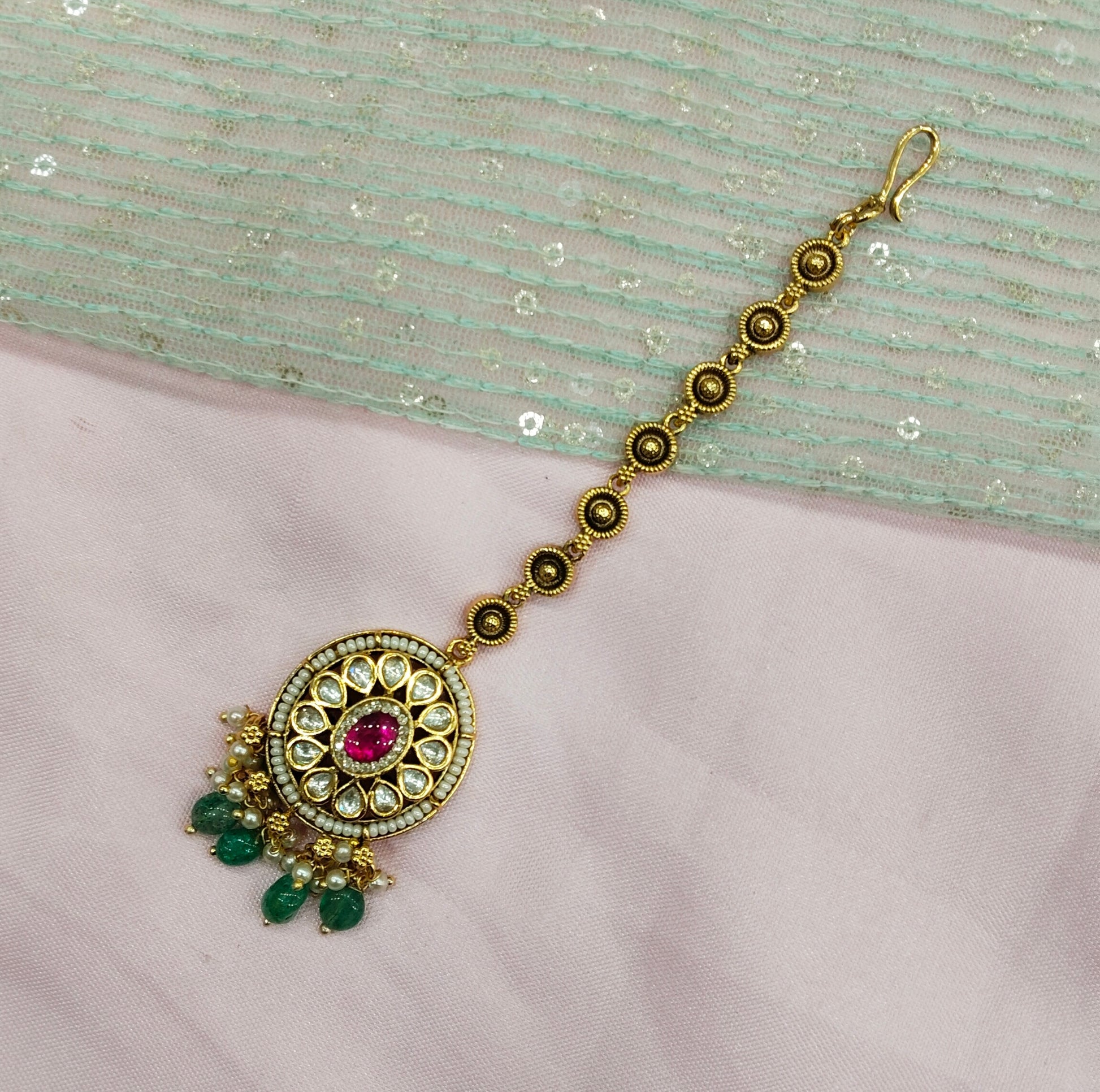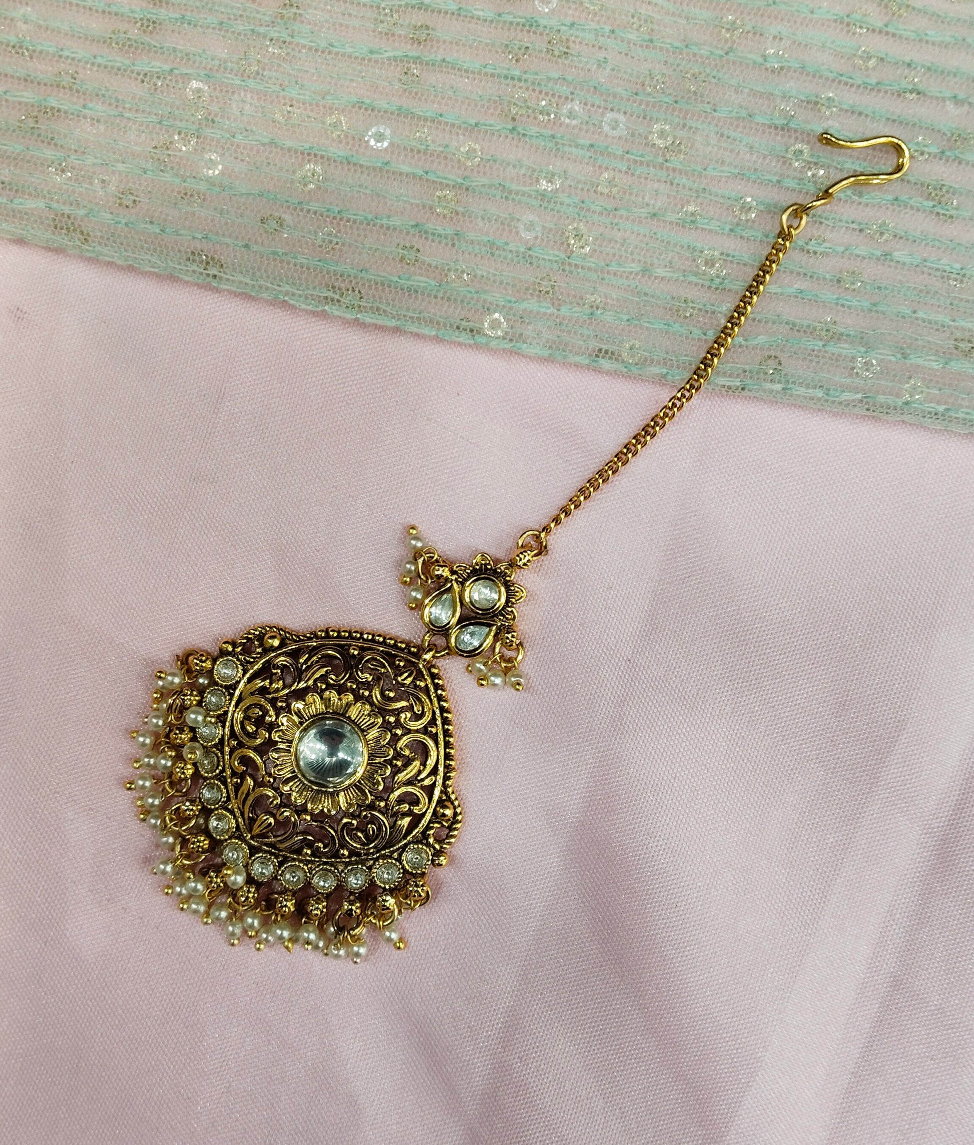 Gold polki Tikka Jewellery Headpiece Gurpiar Set
