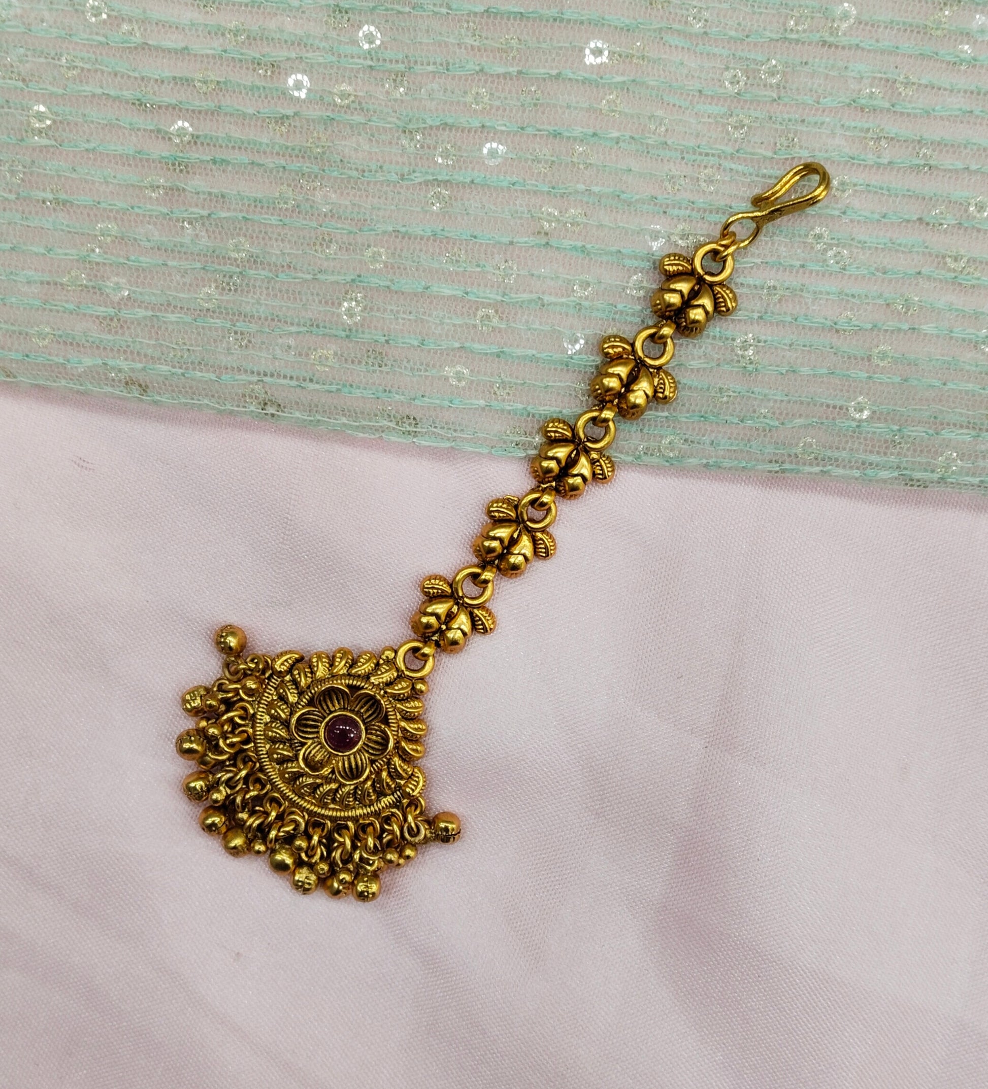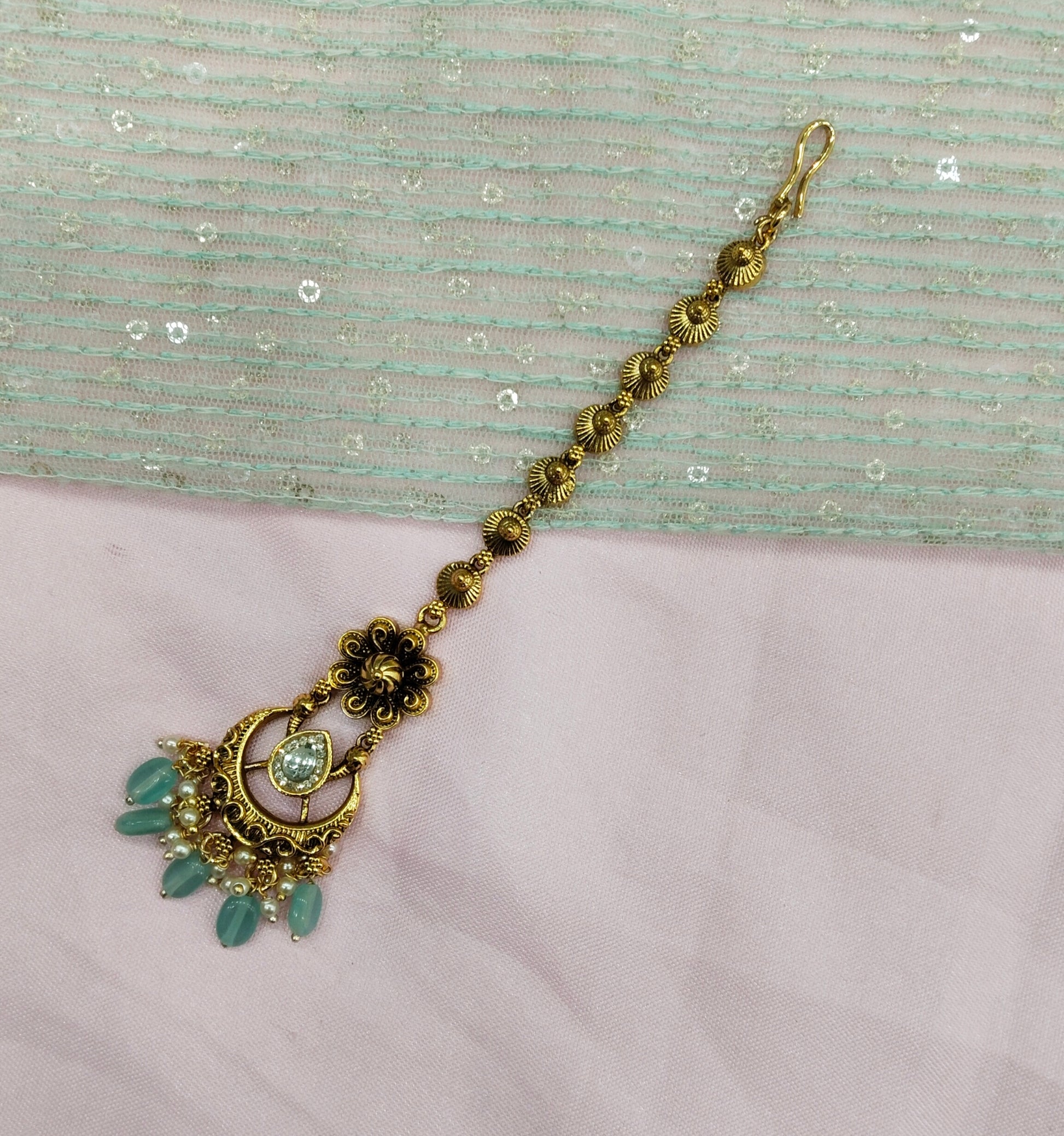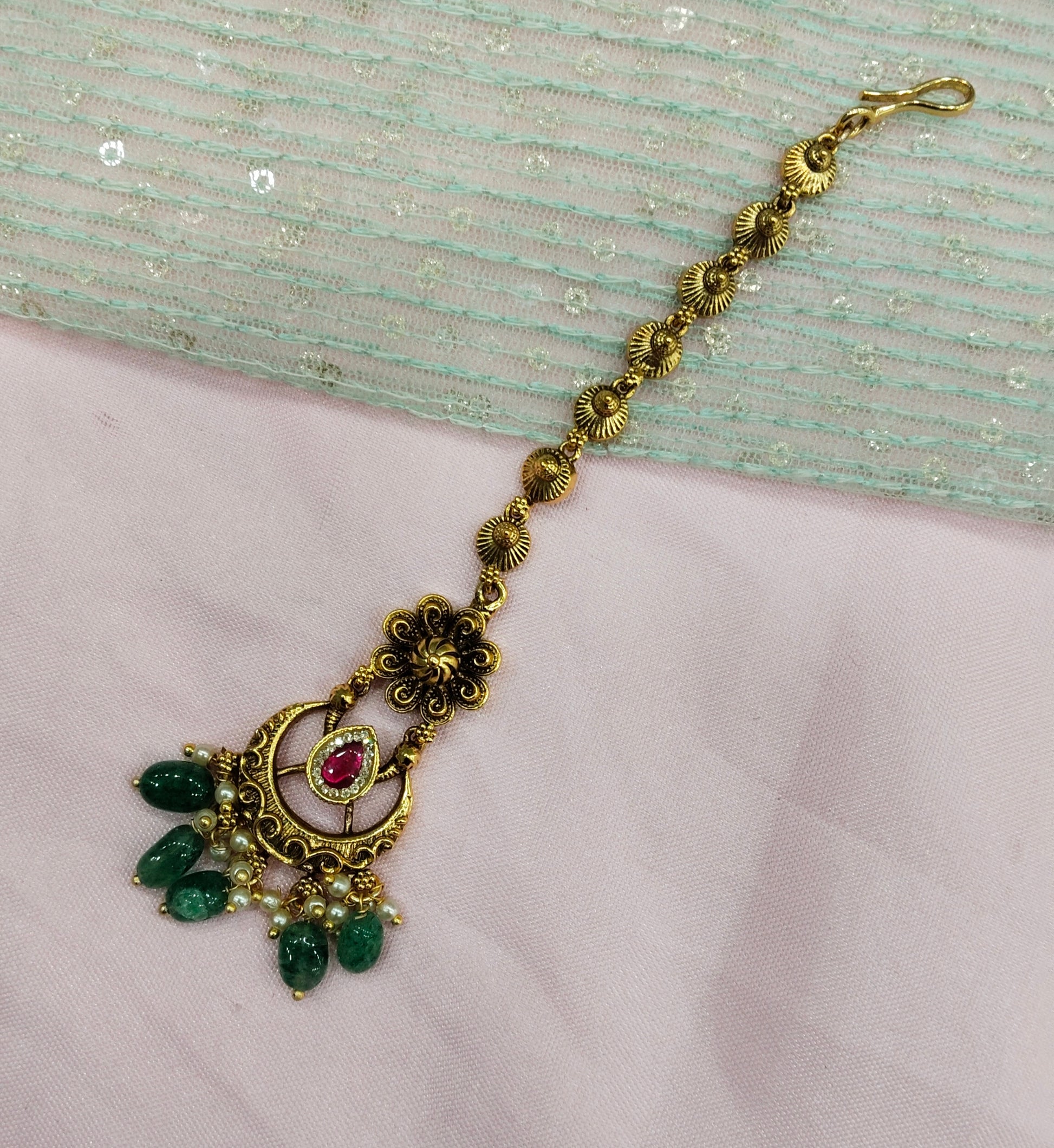 Gold polki Tikka Jewellery Headpiece Gurpiar Set