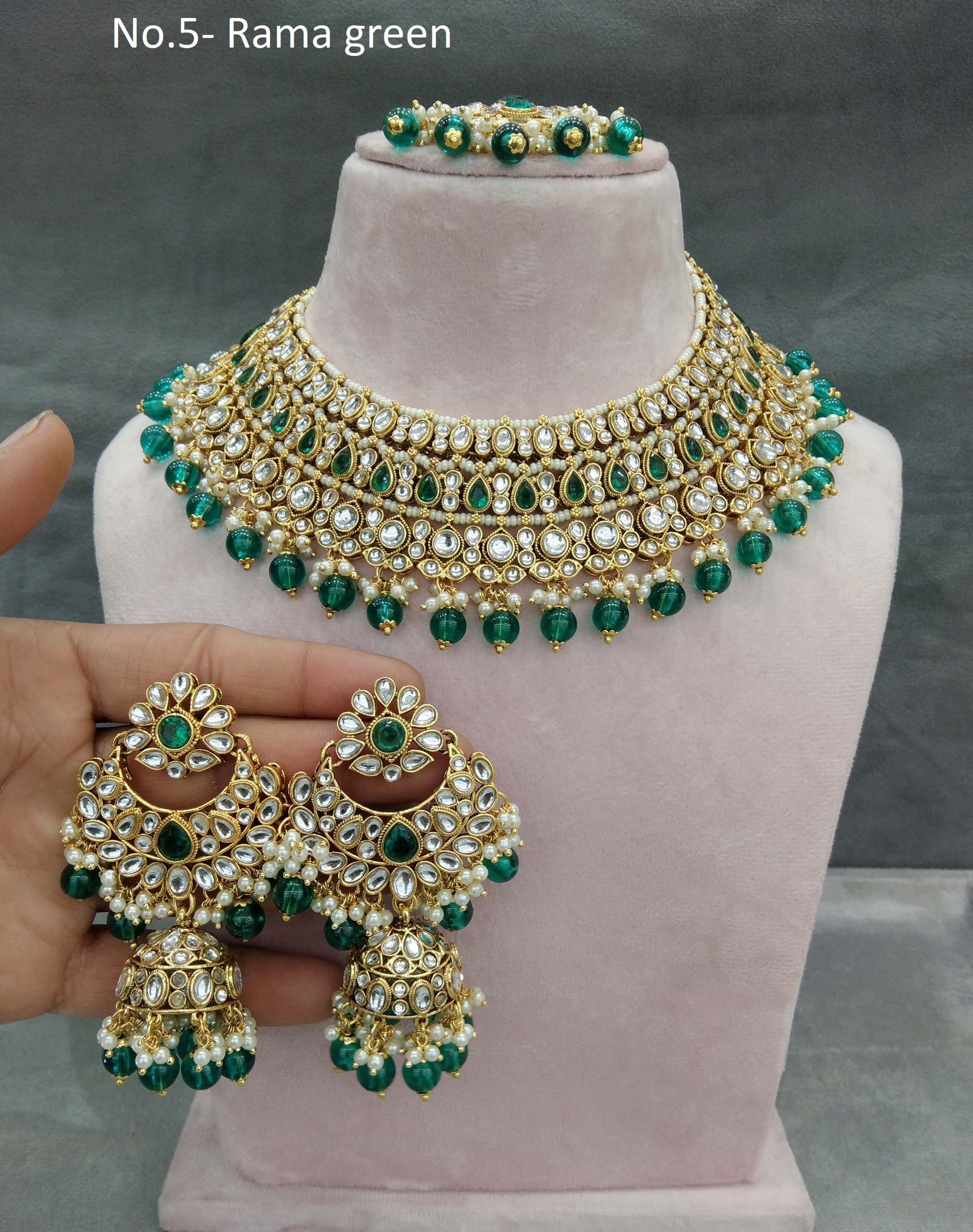 Gold Rama green Kundan necklace nili indian jewellery Set