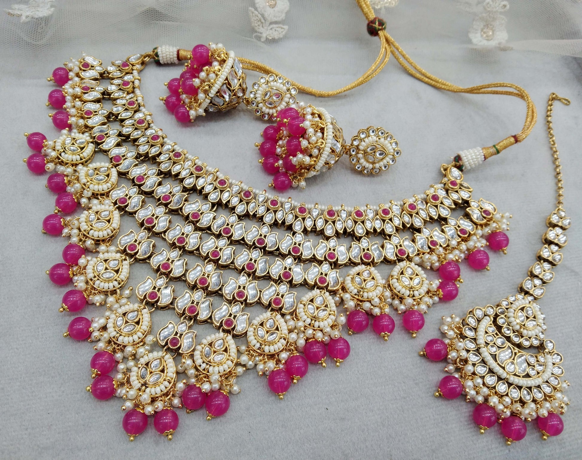 Indian Jewellery Pink Kundan Choker Set/ kundan choker hello Set