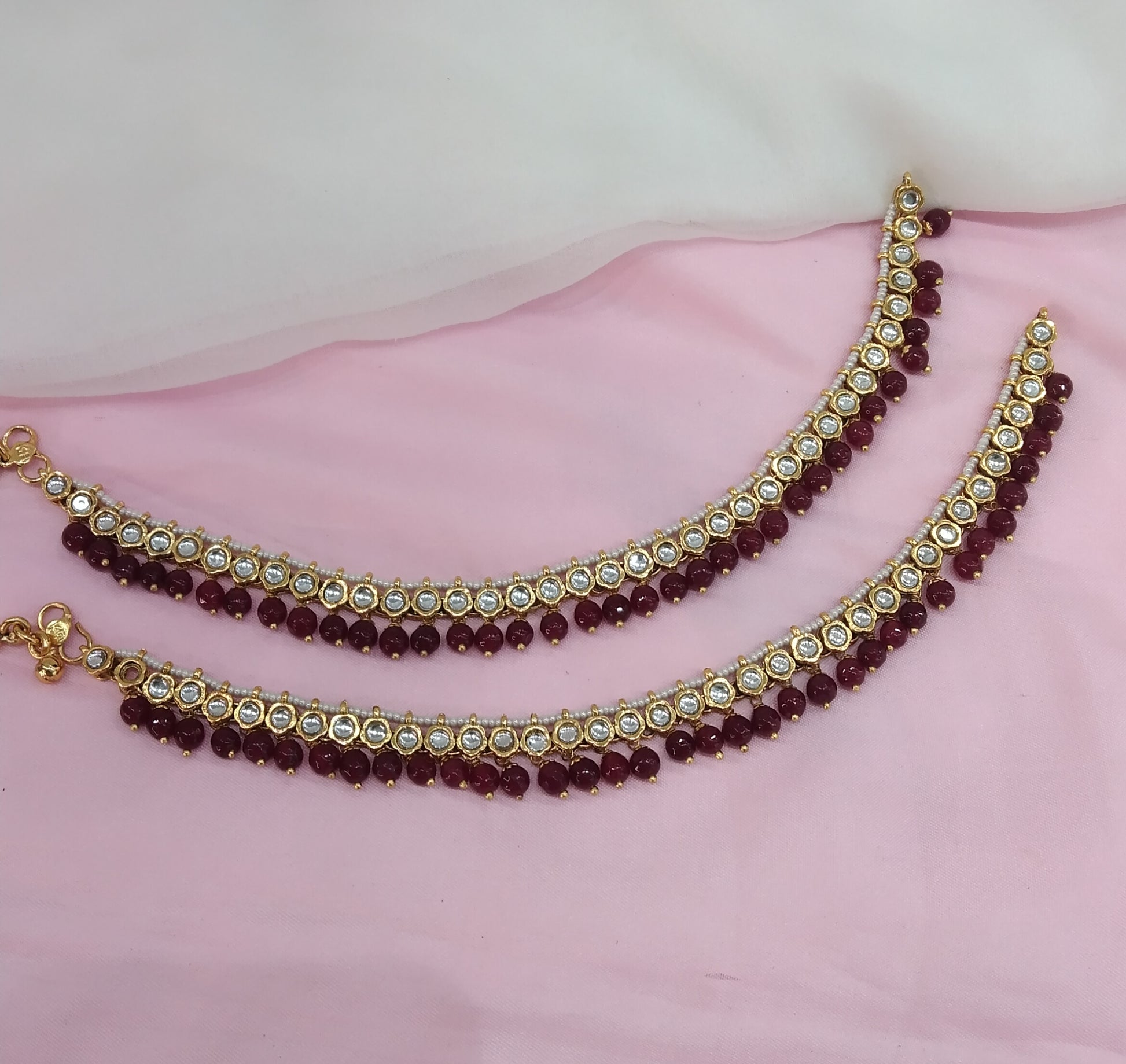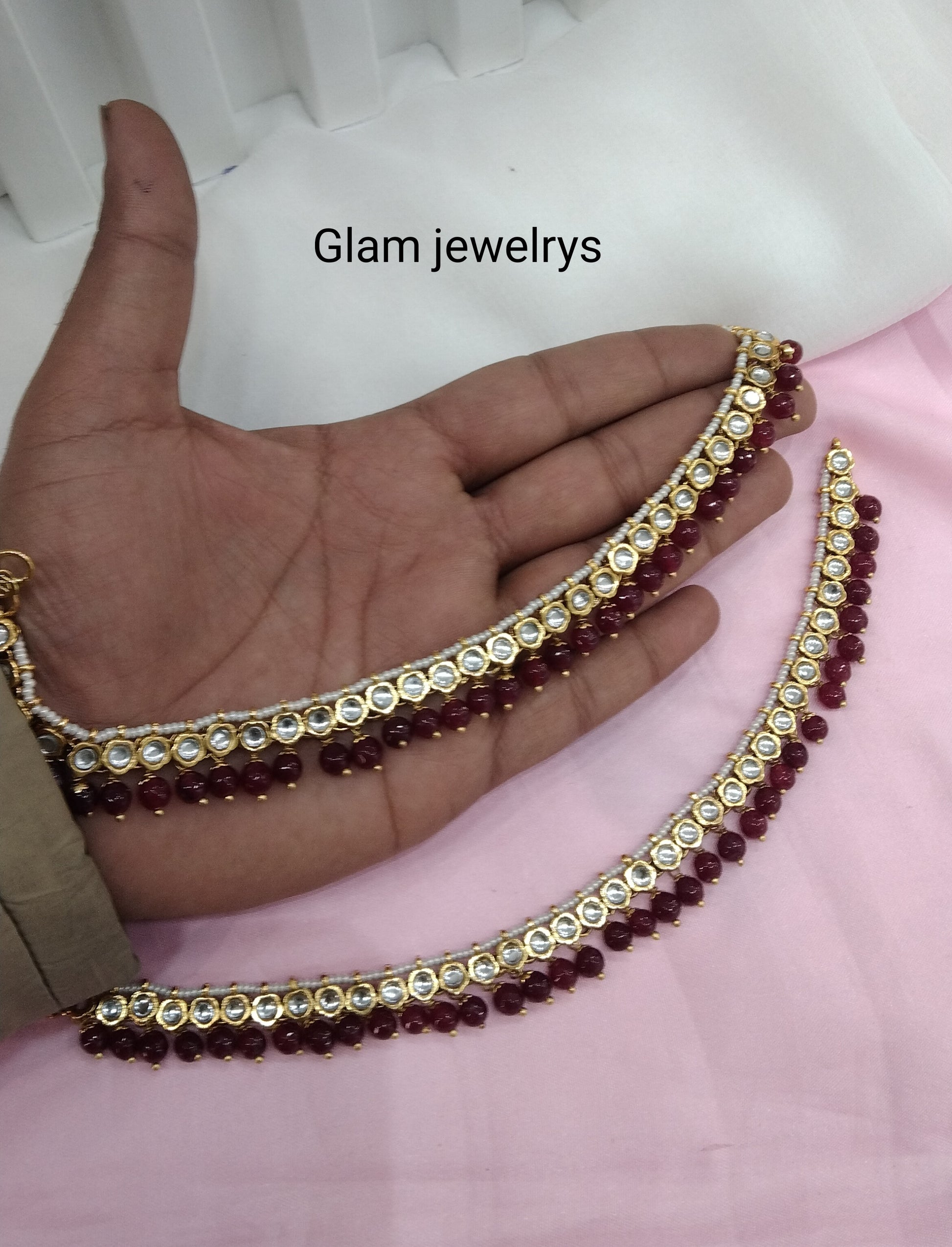 Gold Ruby Kundan Anklets Jhanjar Payal Indian Jewellery opti Set