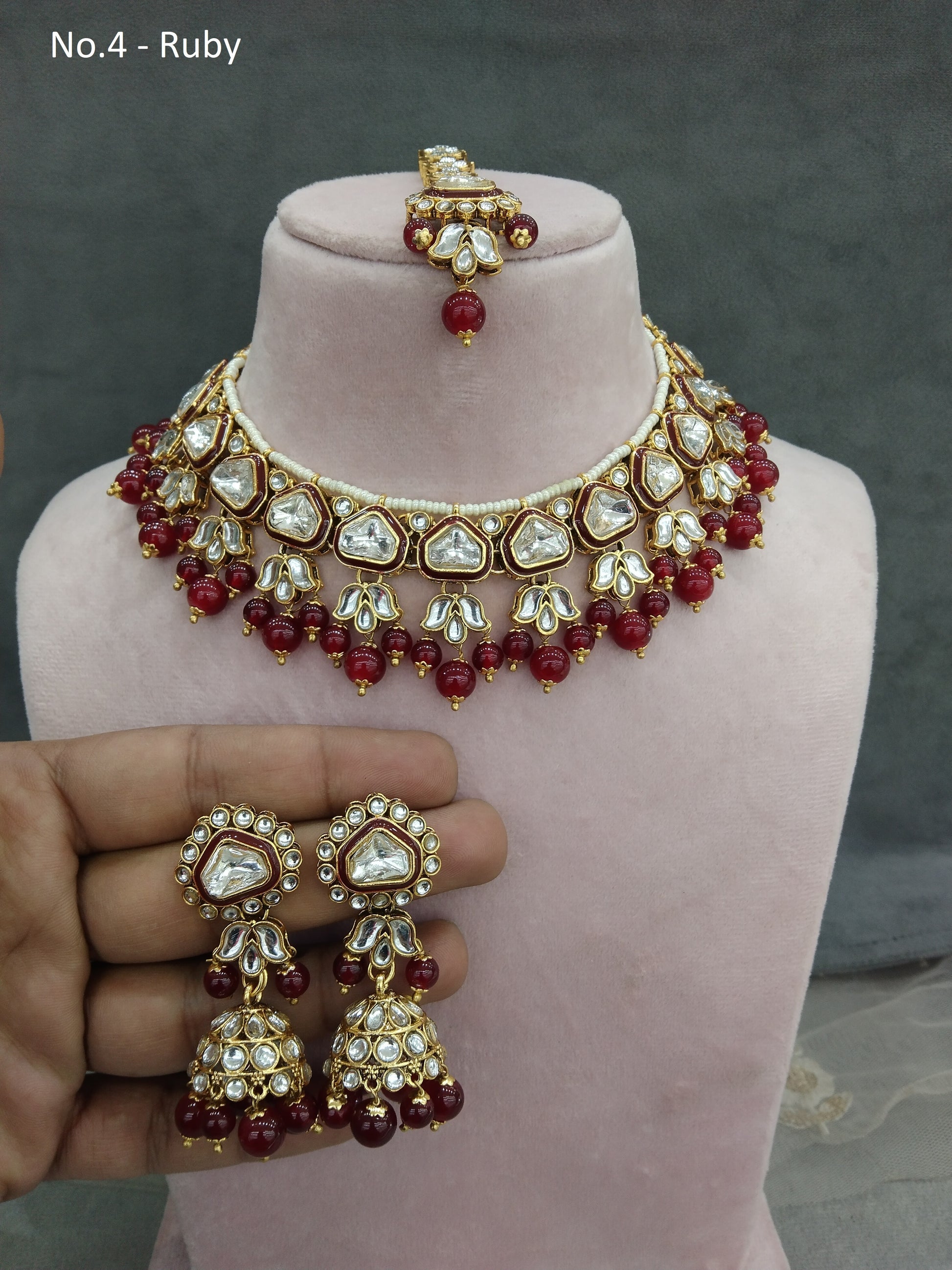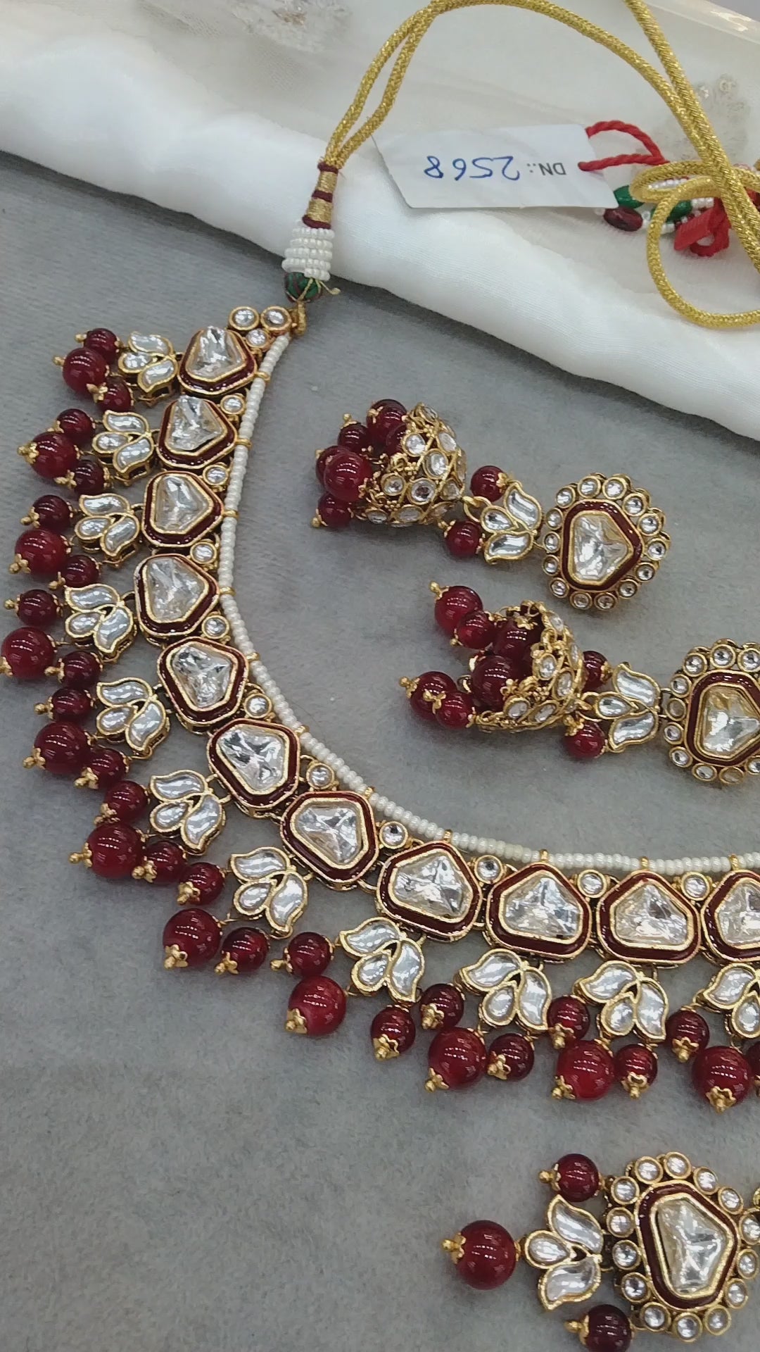 Gold ruby Kundan necklace Set/ Gold kundan Indian jewellery kundan atly sets