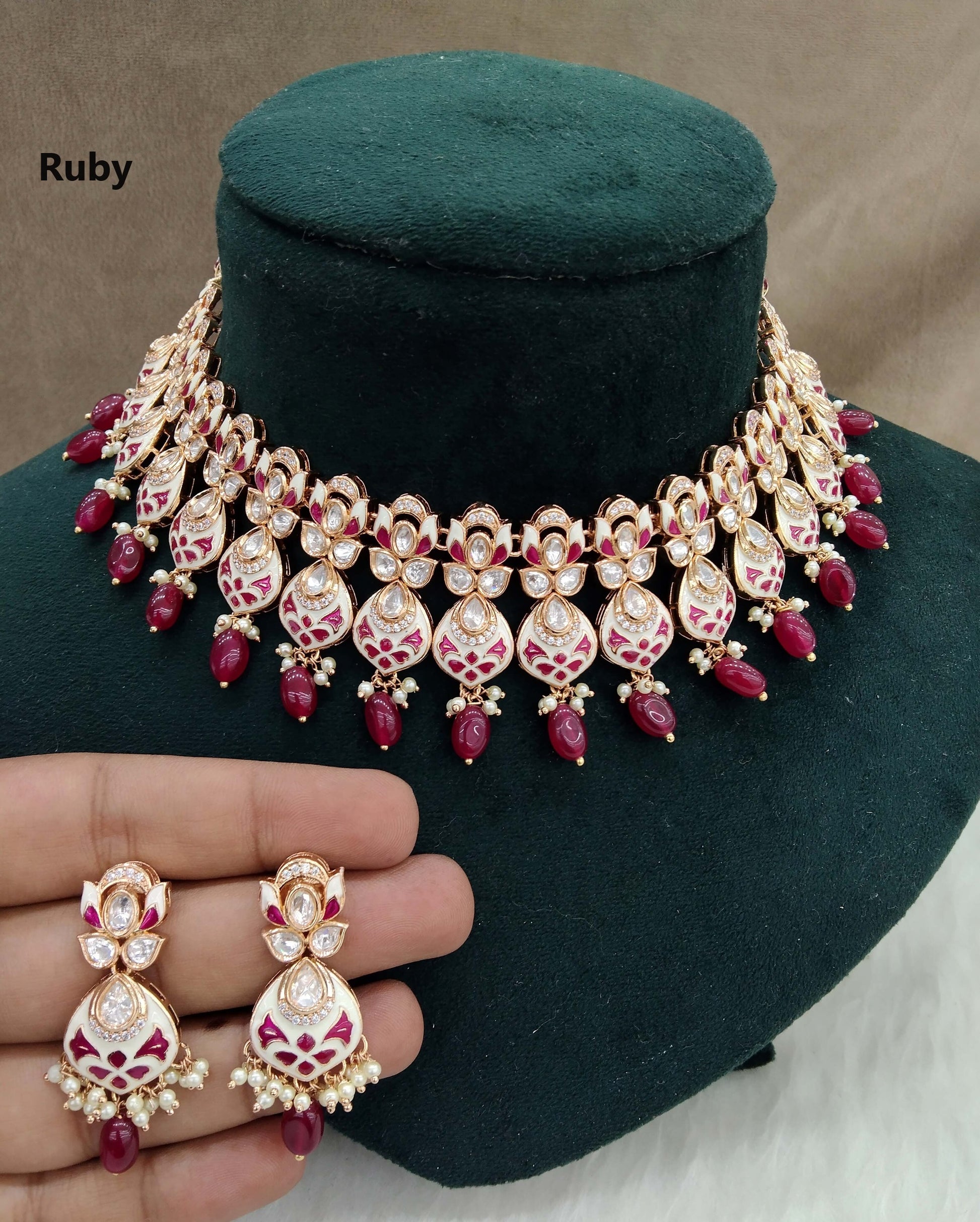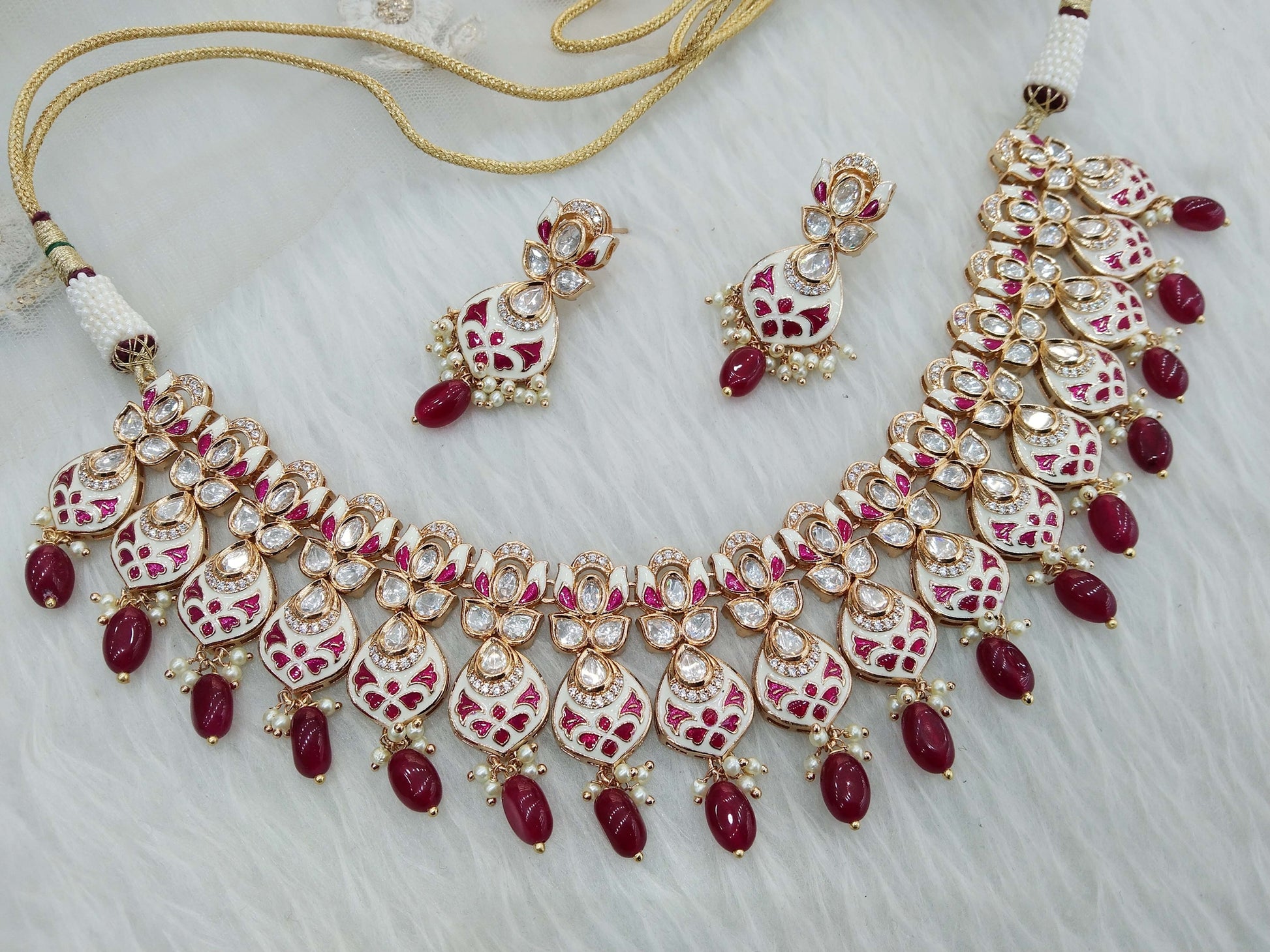 Gold ruby Kundan Necklace Jewellery Set/ Gold kundan Indian jewellery kundan runes sets