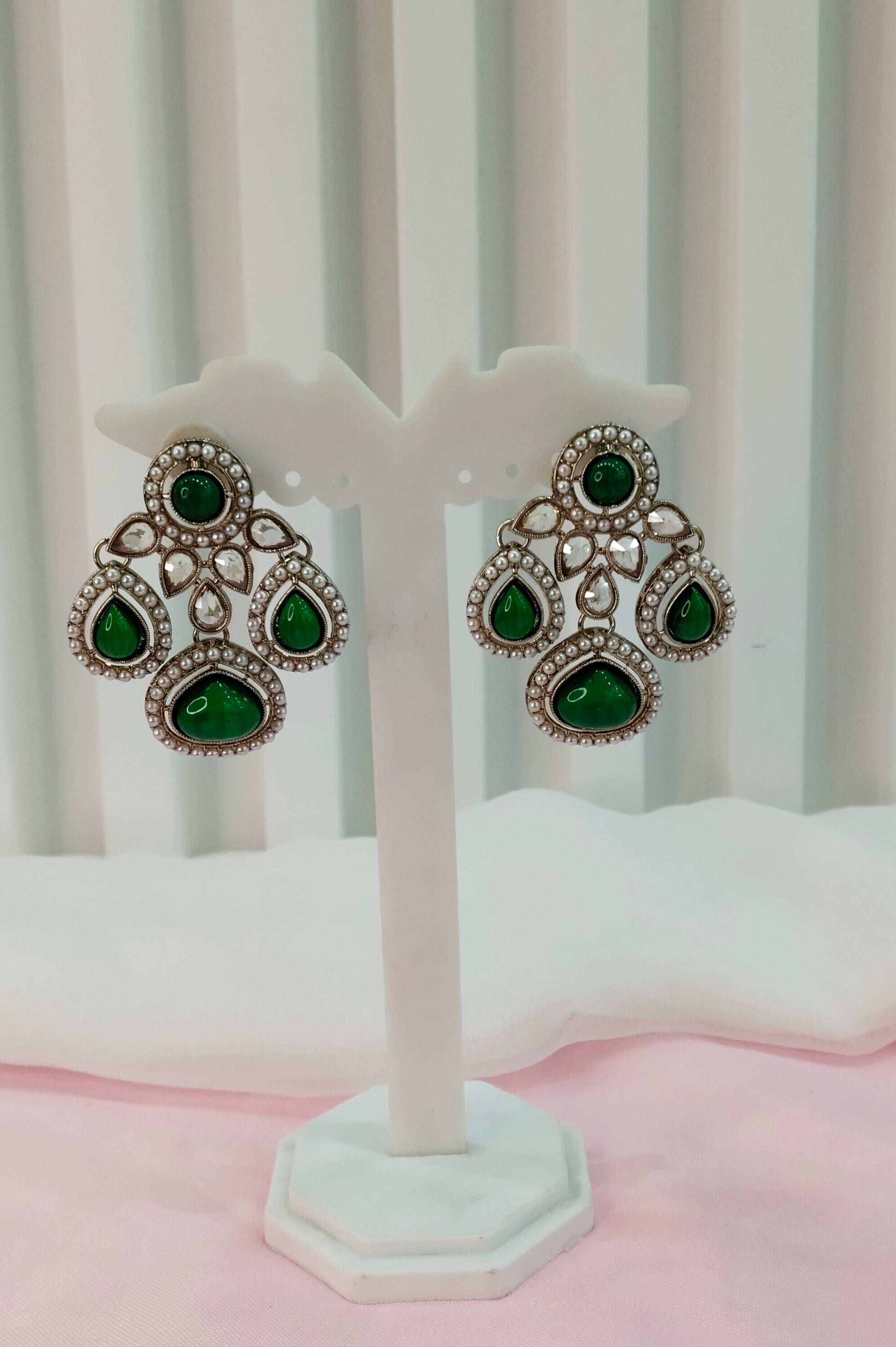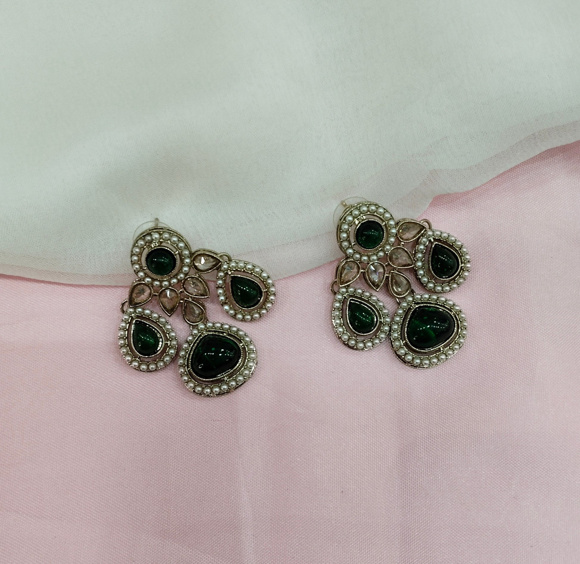 Green Antique Gold Bollywood Indian Earrings Global Set