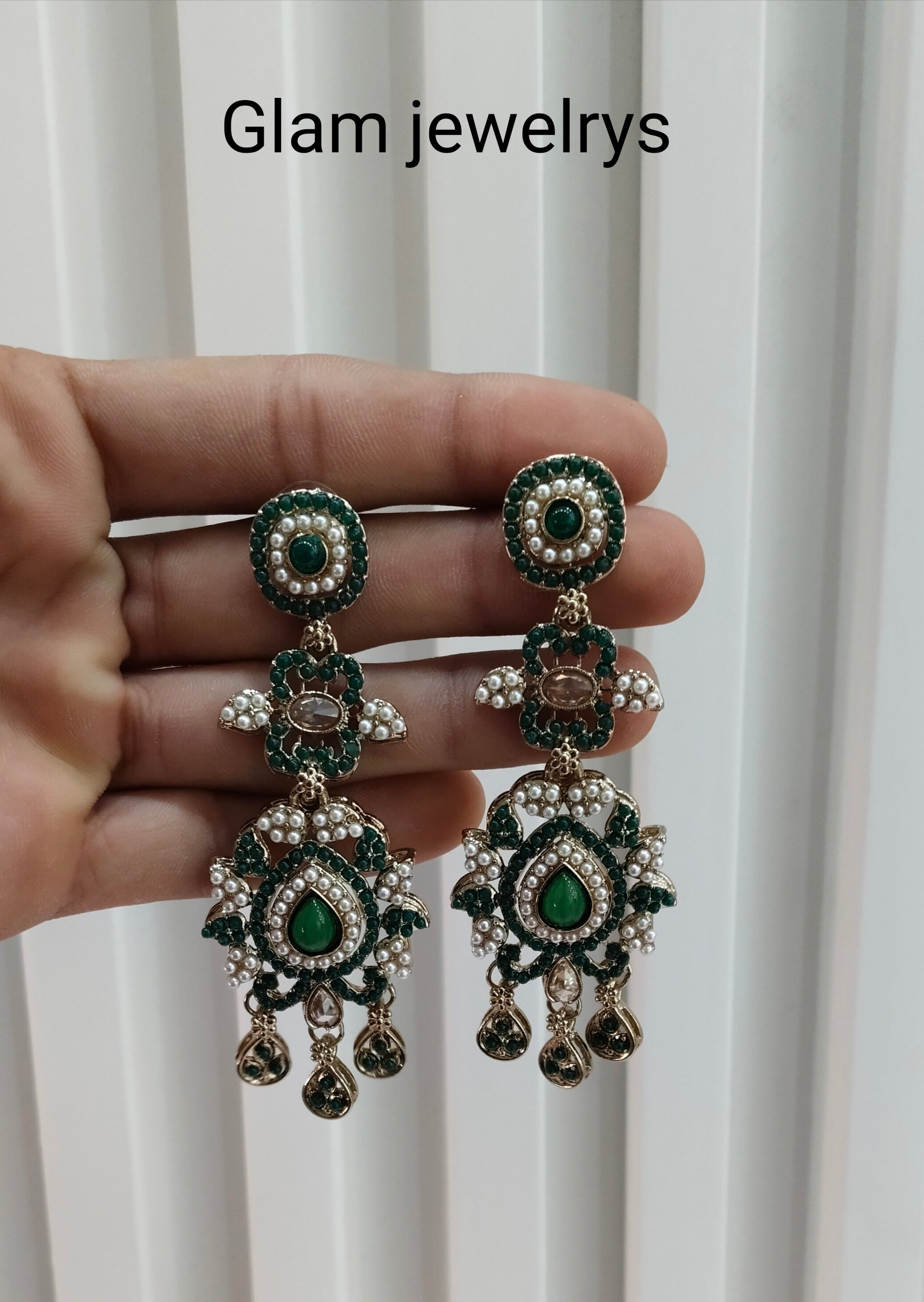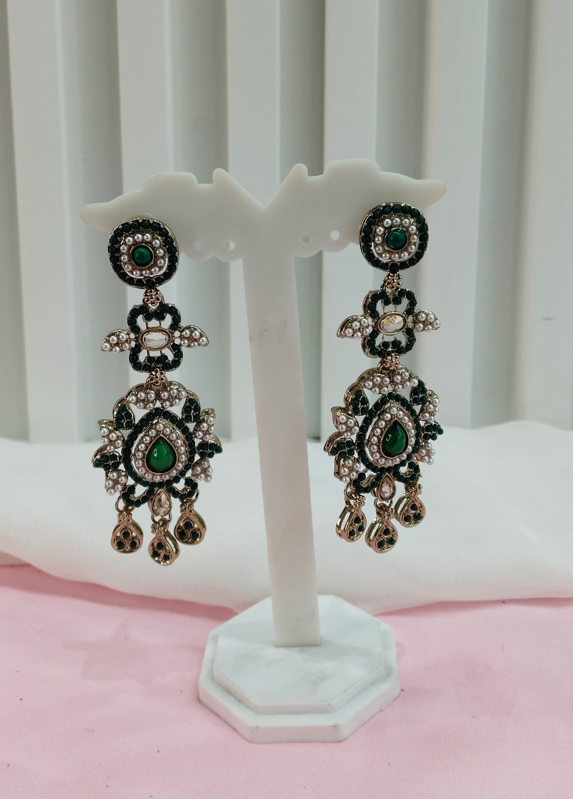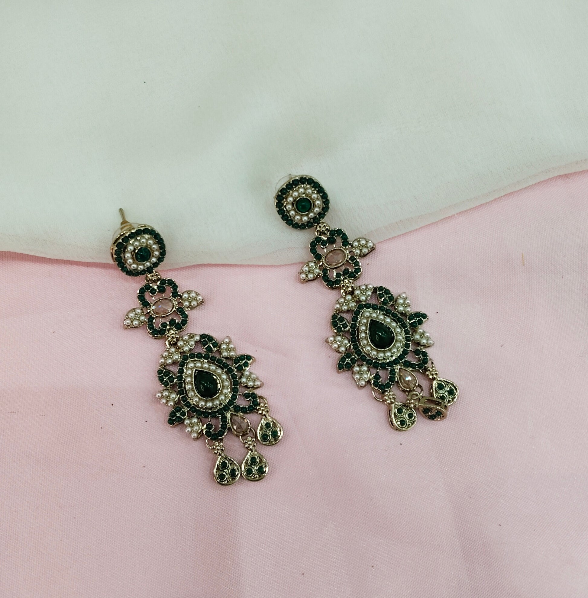 Green Antique Gold Bollywood Indian Earrings Nahar Set