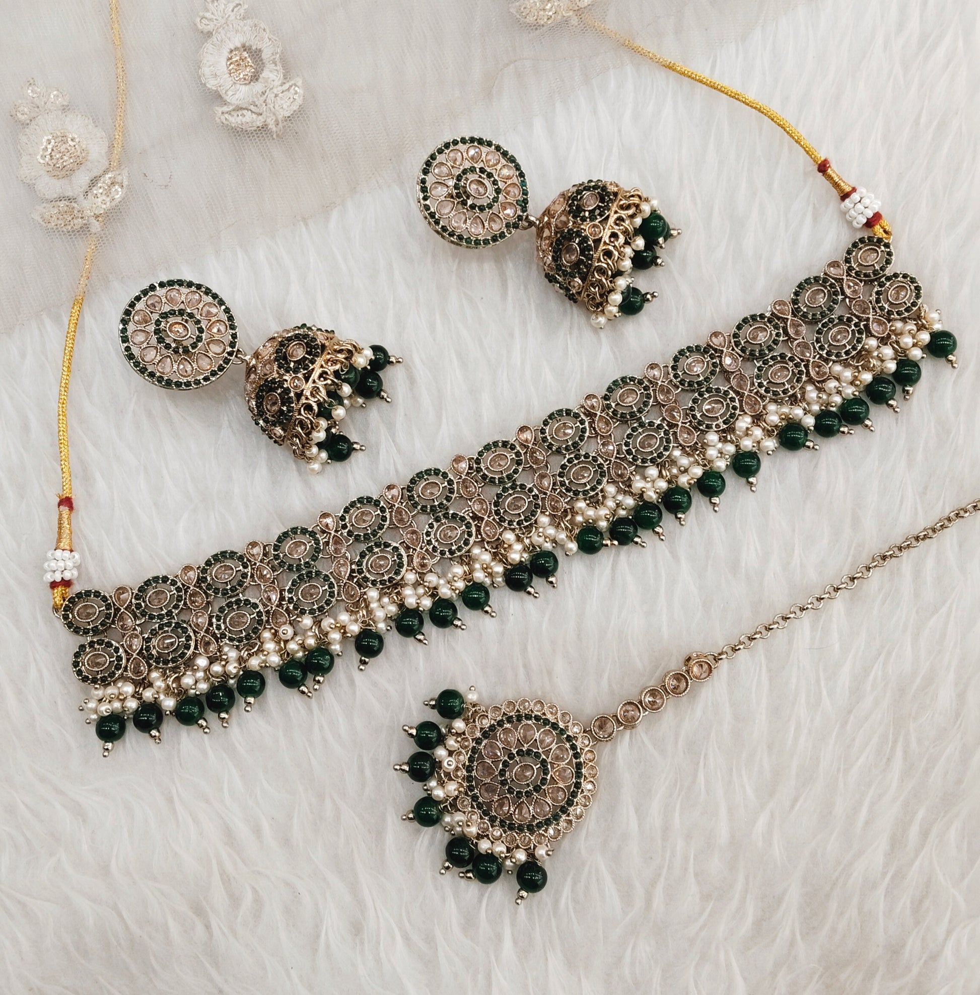 *Light weight gold Choker Set with earrings Tikka as shown in the pic.