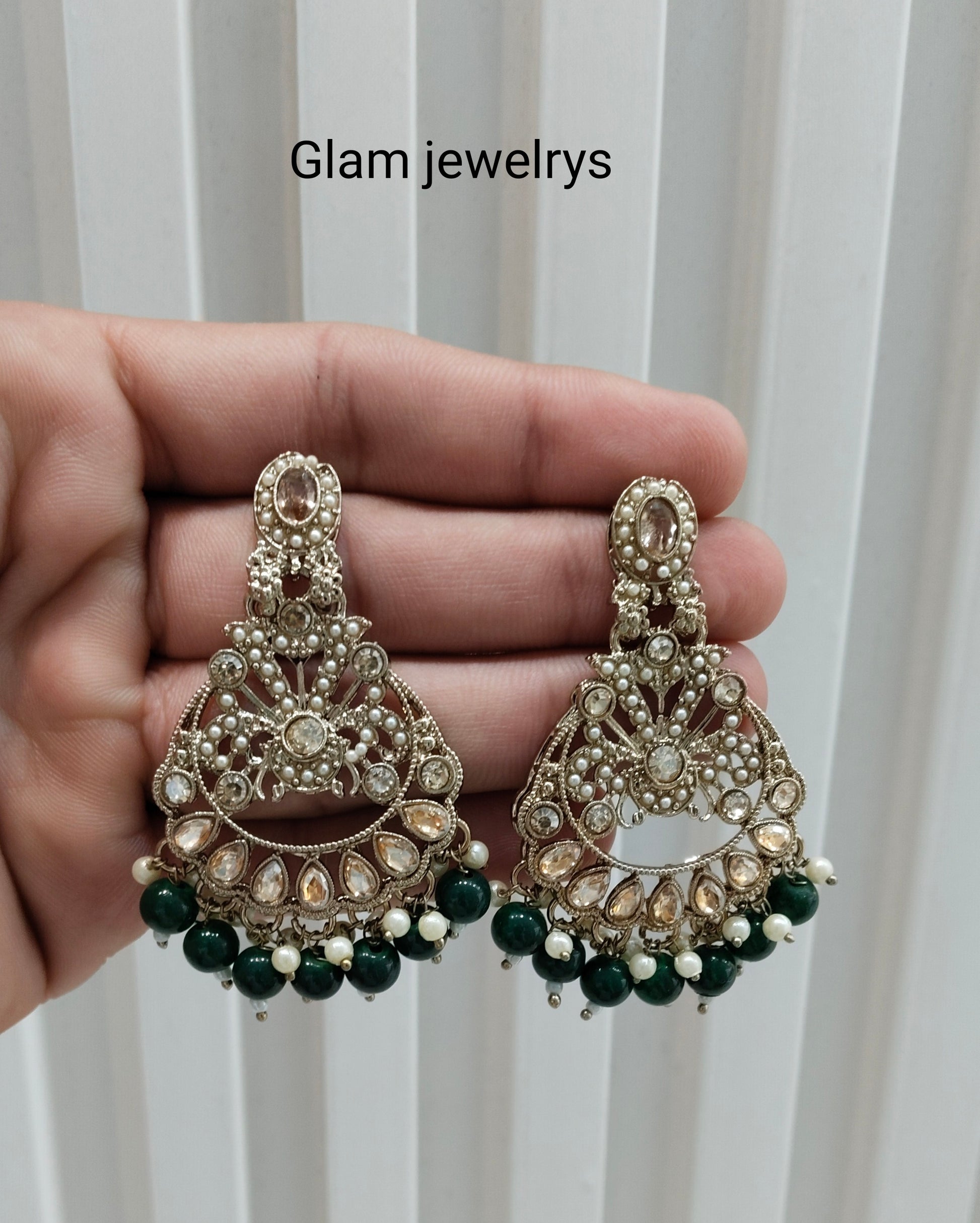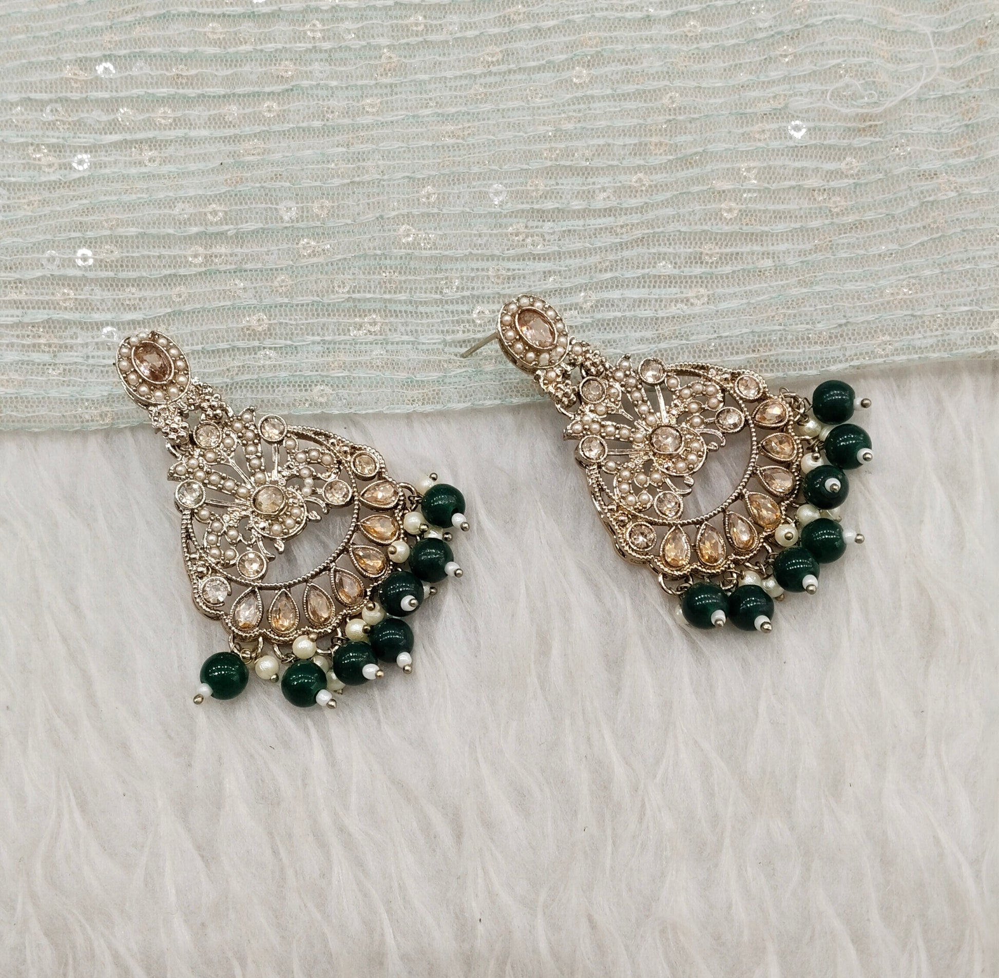 Green Antique Gold Bollywood Ammy Indian Earrings