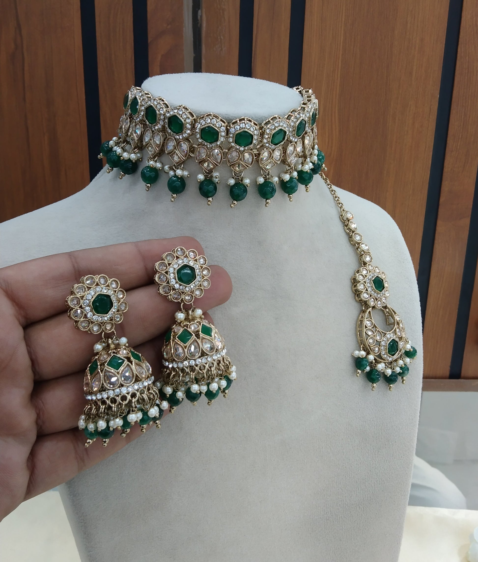 *Light weight gold Choker Set with earrings Tikka as shown in the pic.