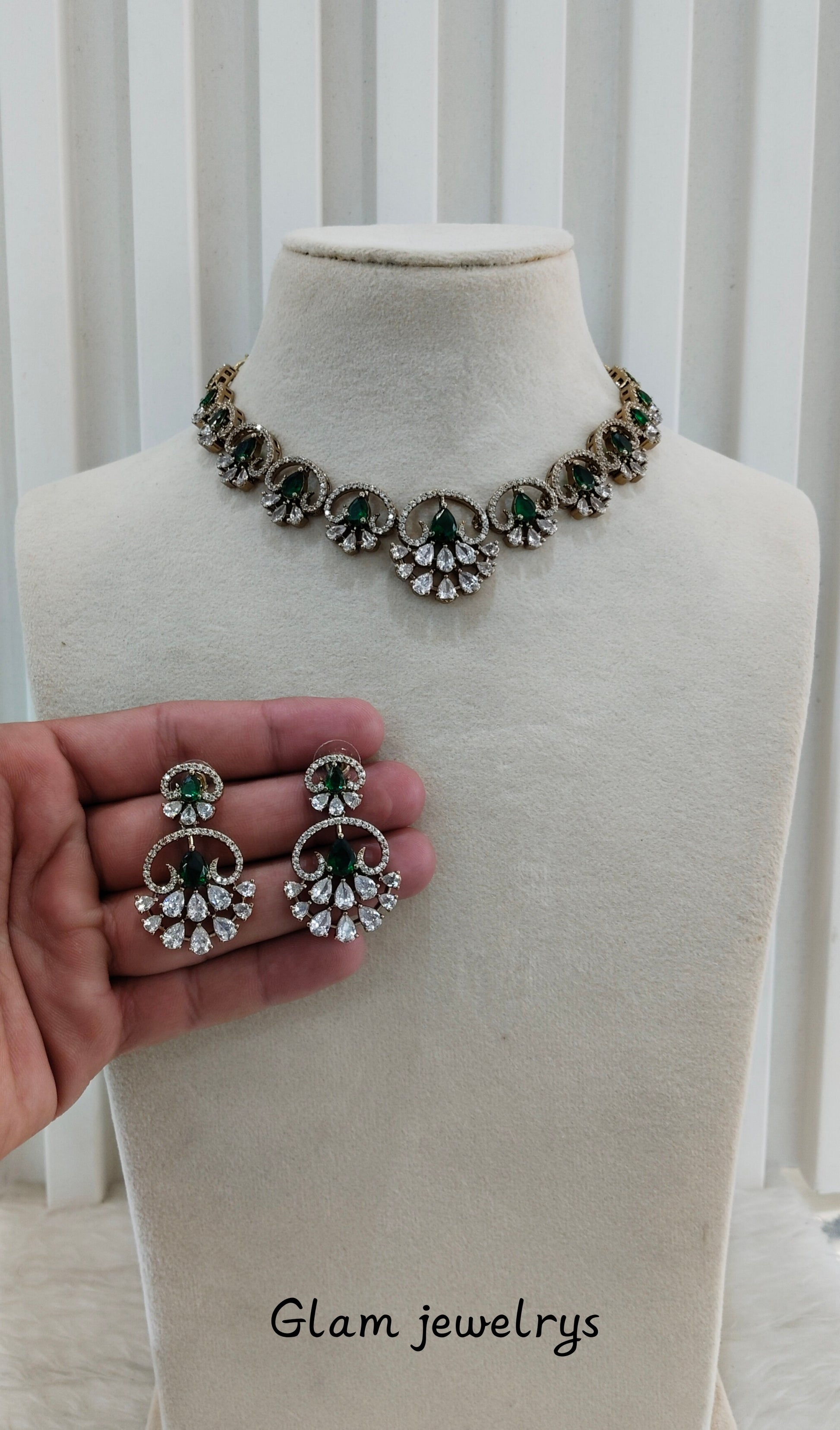 Green CZ Necklace Indian Jewellery Armada Set