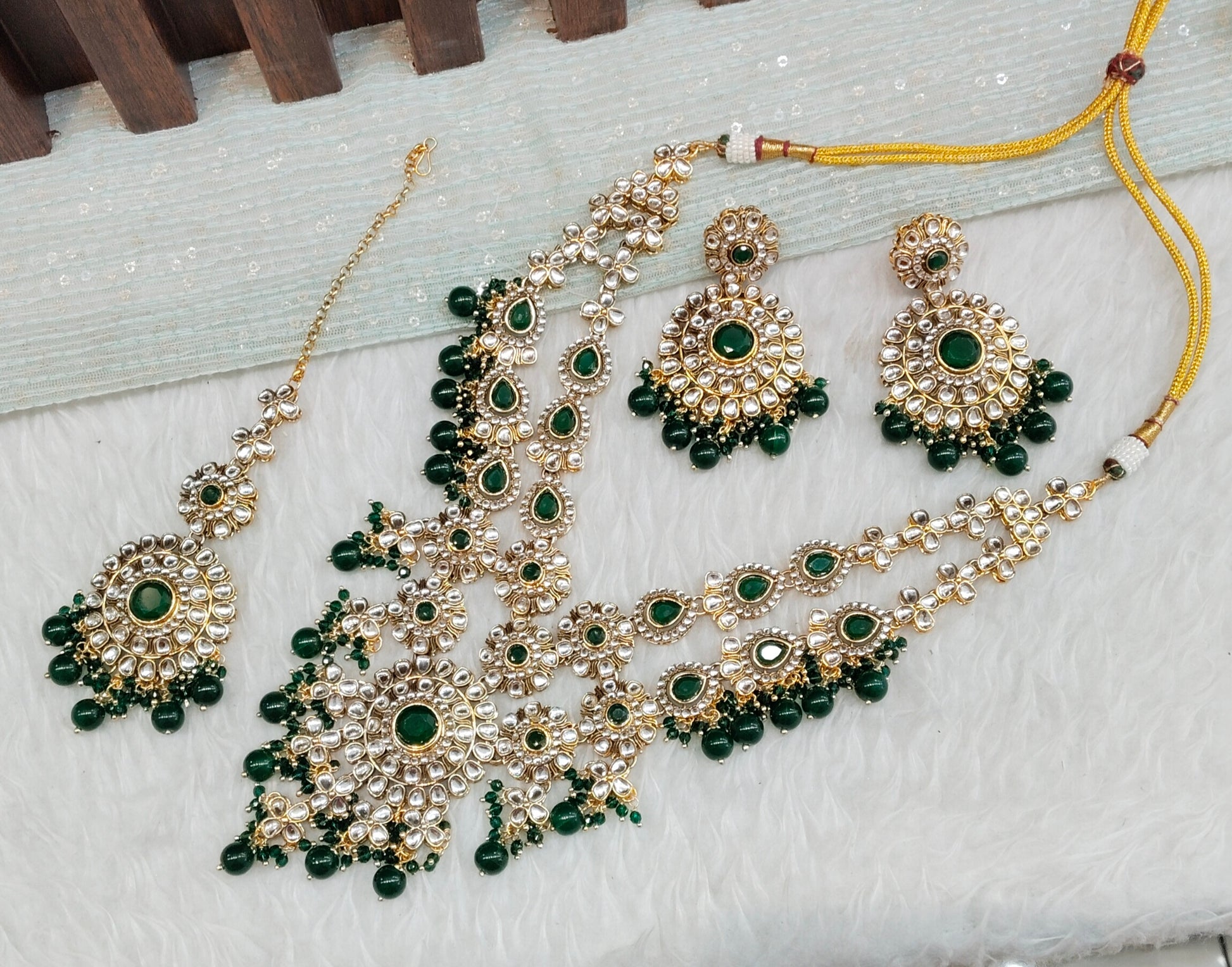 Green Gold Kundan Necklace Indian Jewellery Cello Set