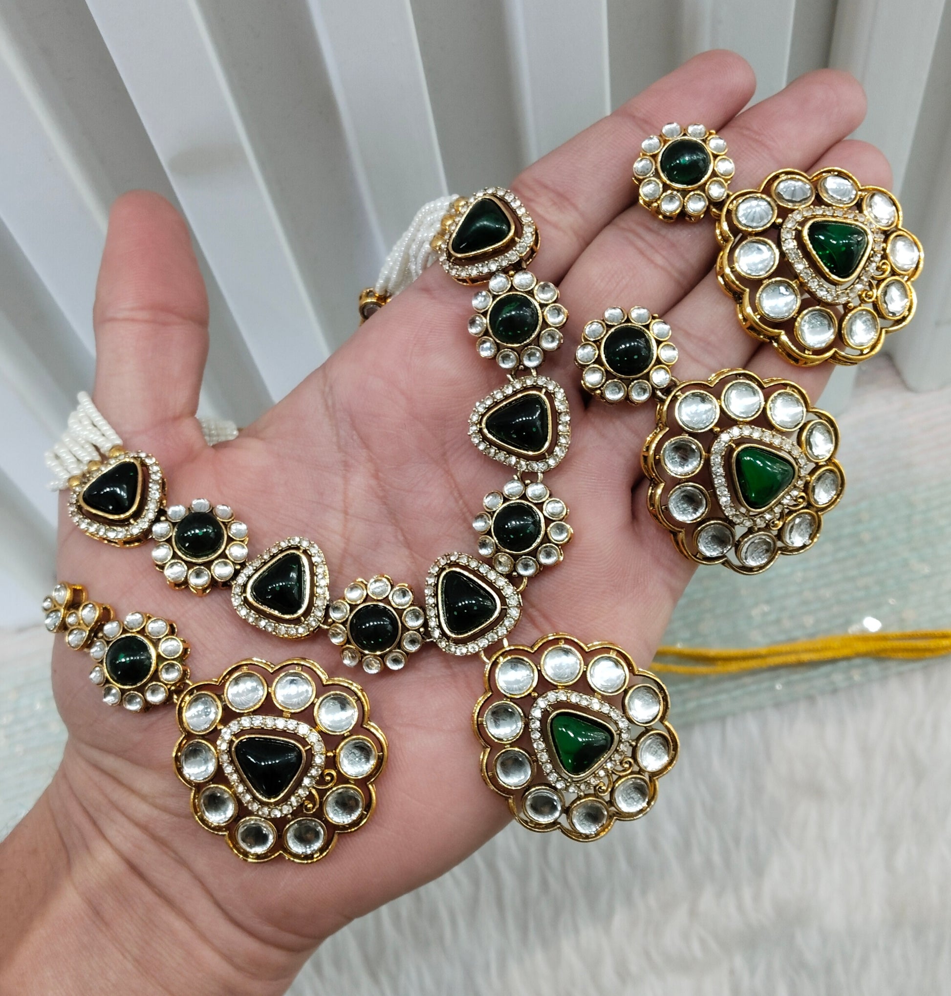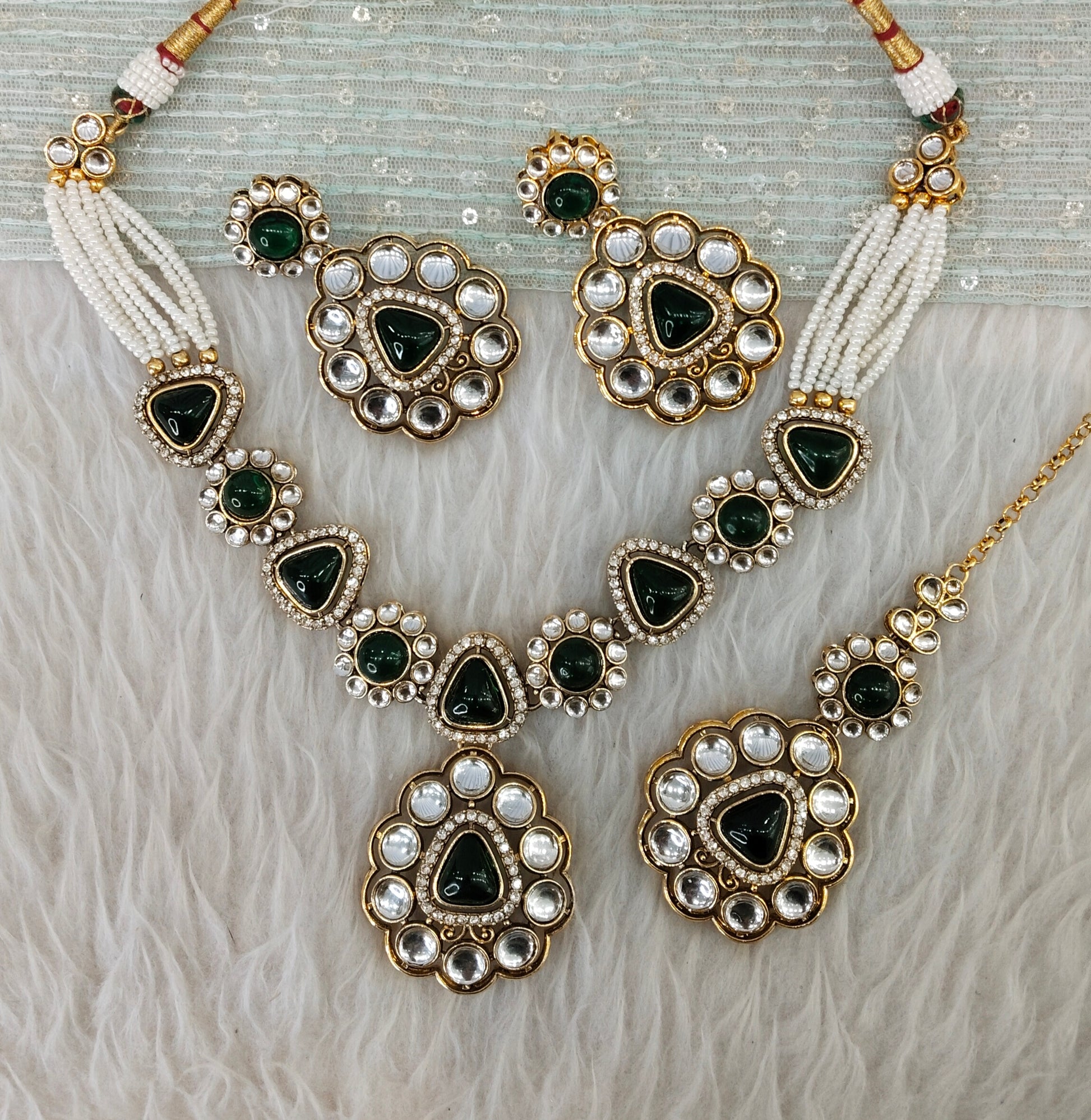 Green Gold Kundan Necklace Indian Jewellery Kajal Set