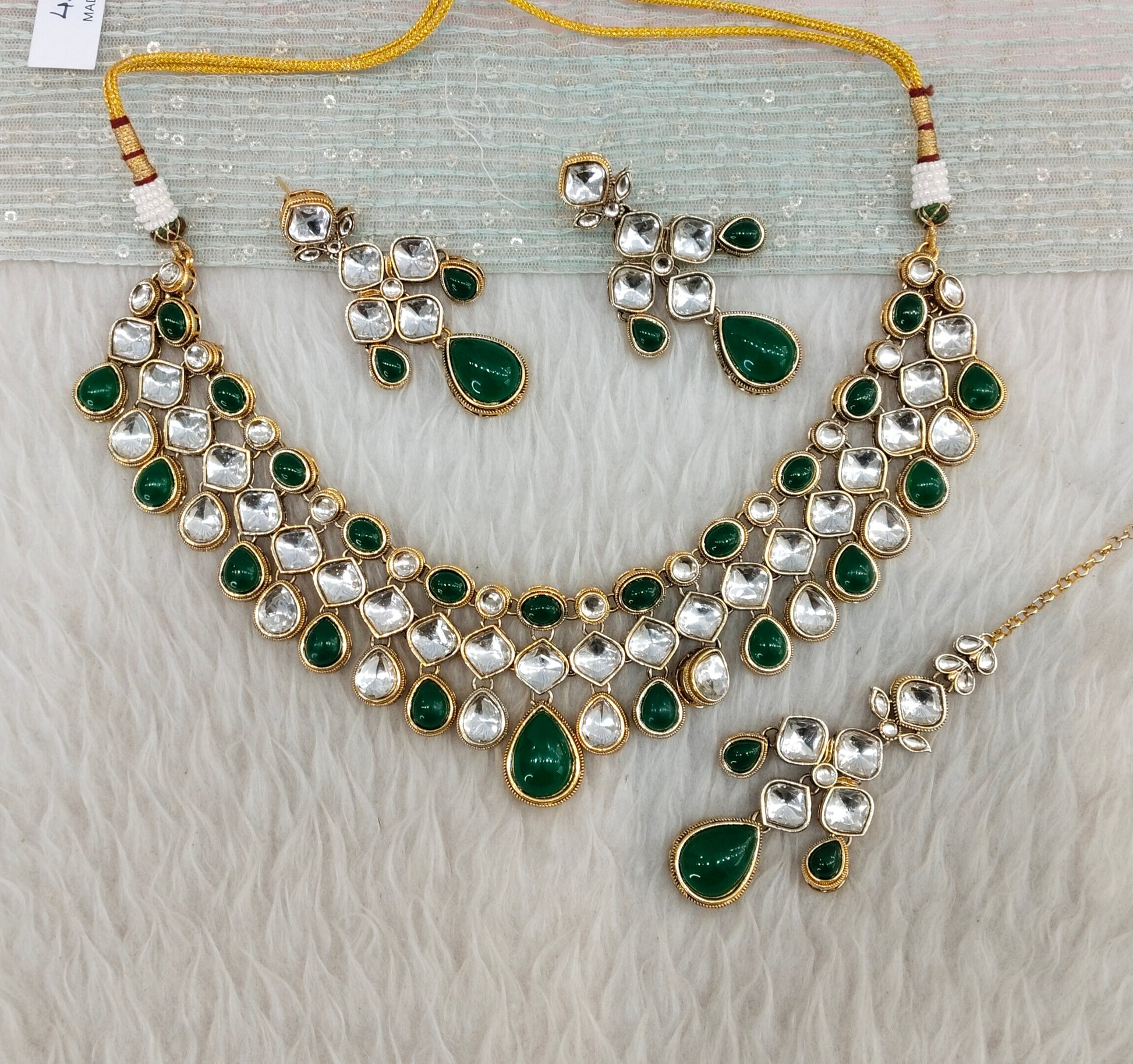 Green Gold Kundan Necklace Indian Jewellery Raveena Set