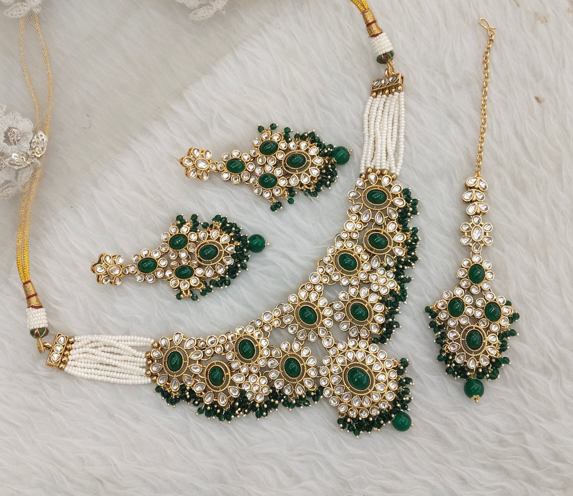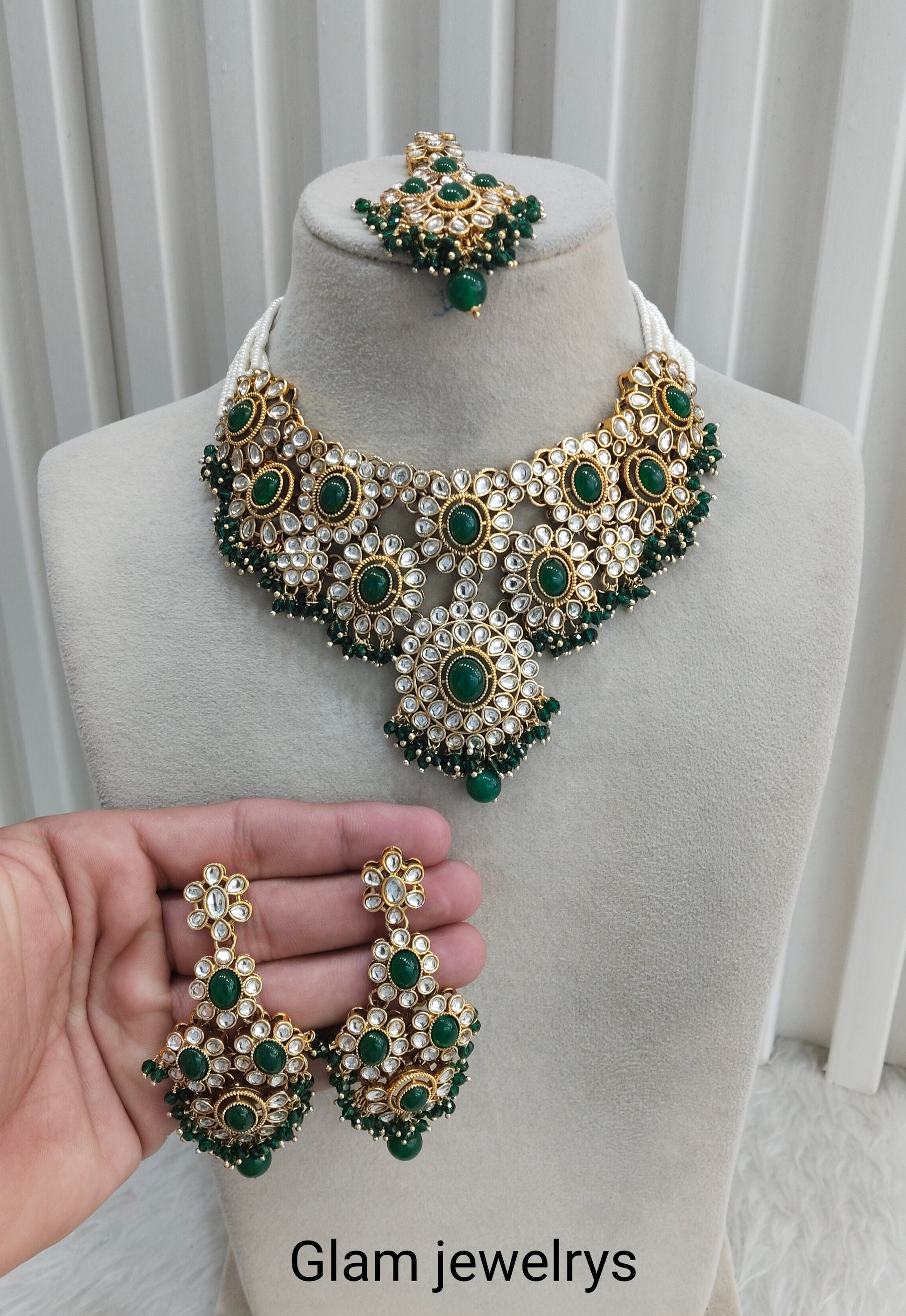 Green Gold Kundan Necklace Indian Jewellery Ritika Set