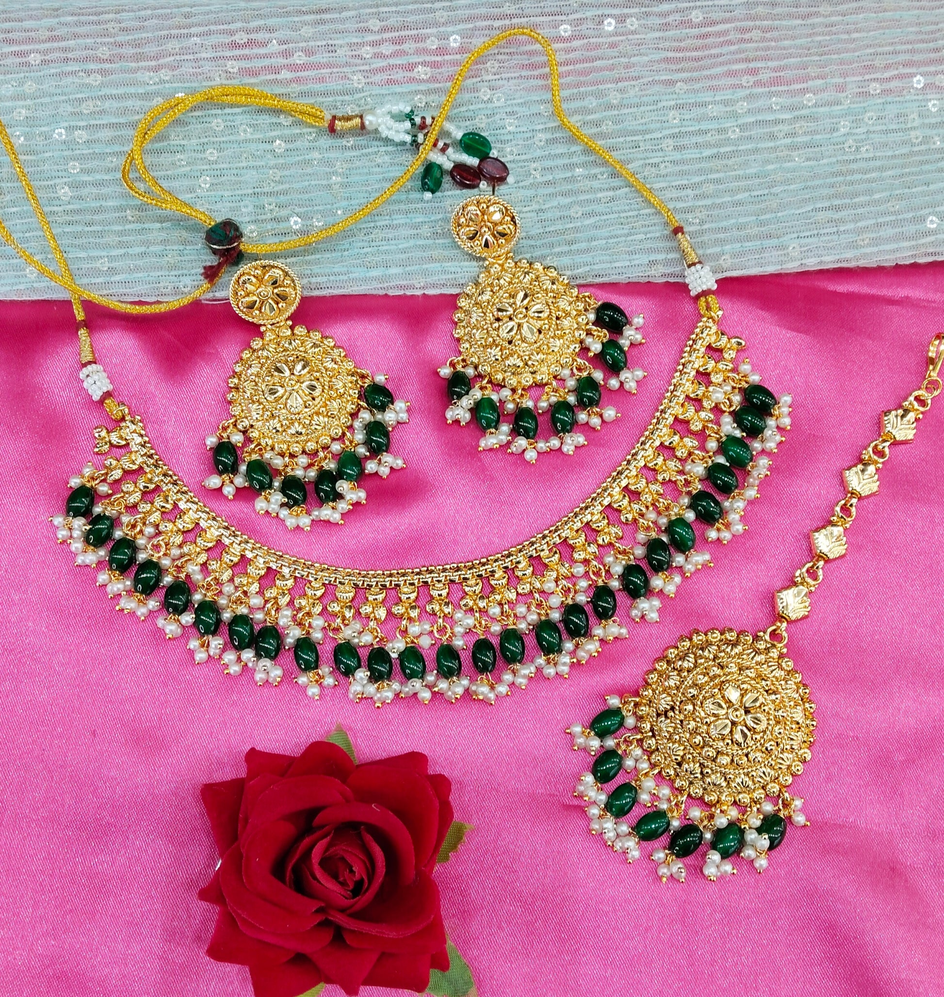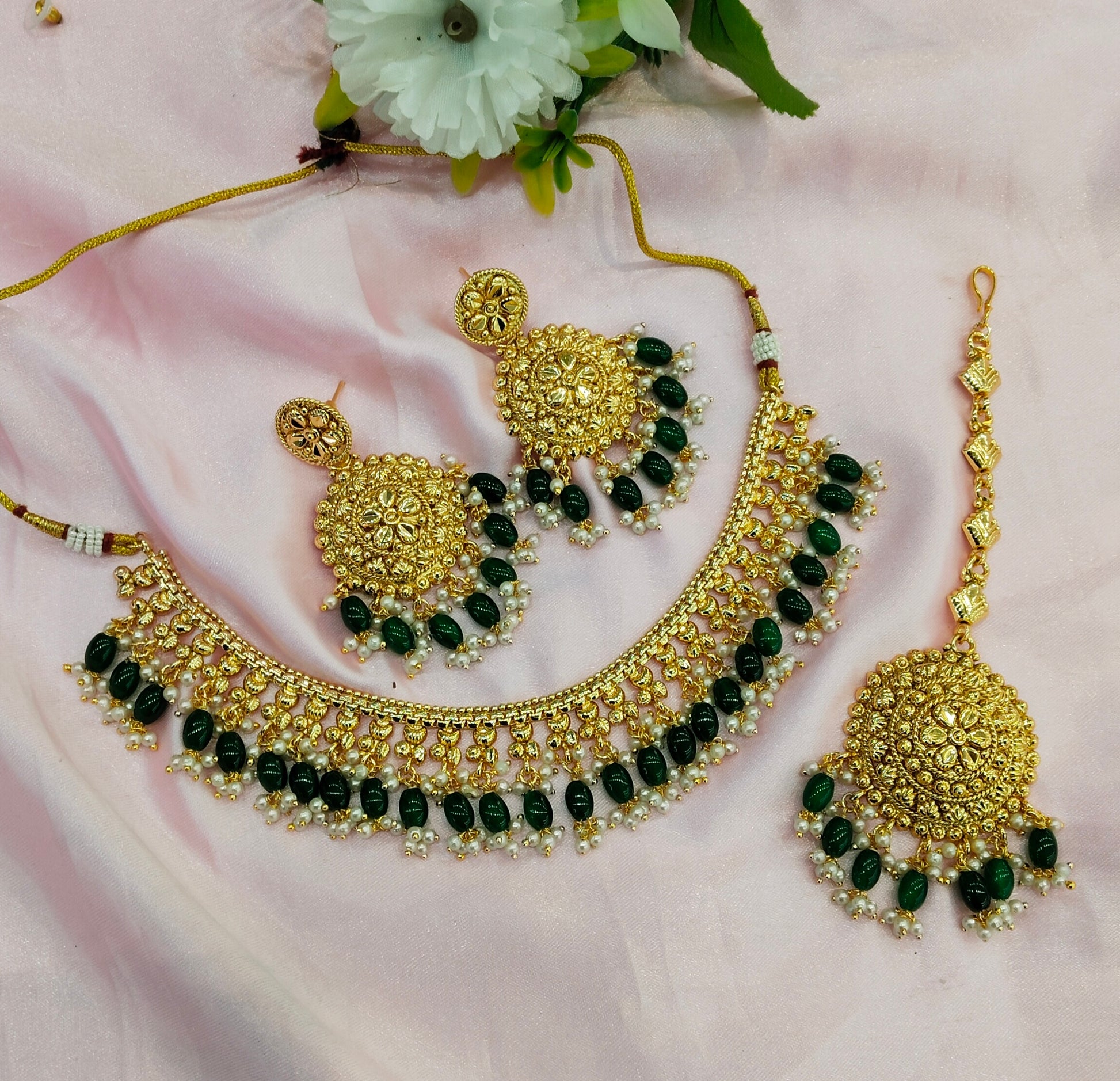 Green Gold Look Punjabi Style Necklace Indian Jewellery Asha Set