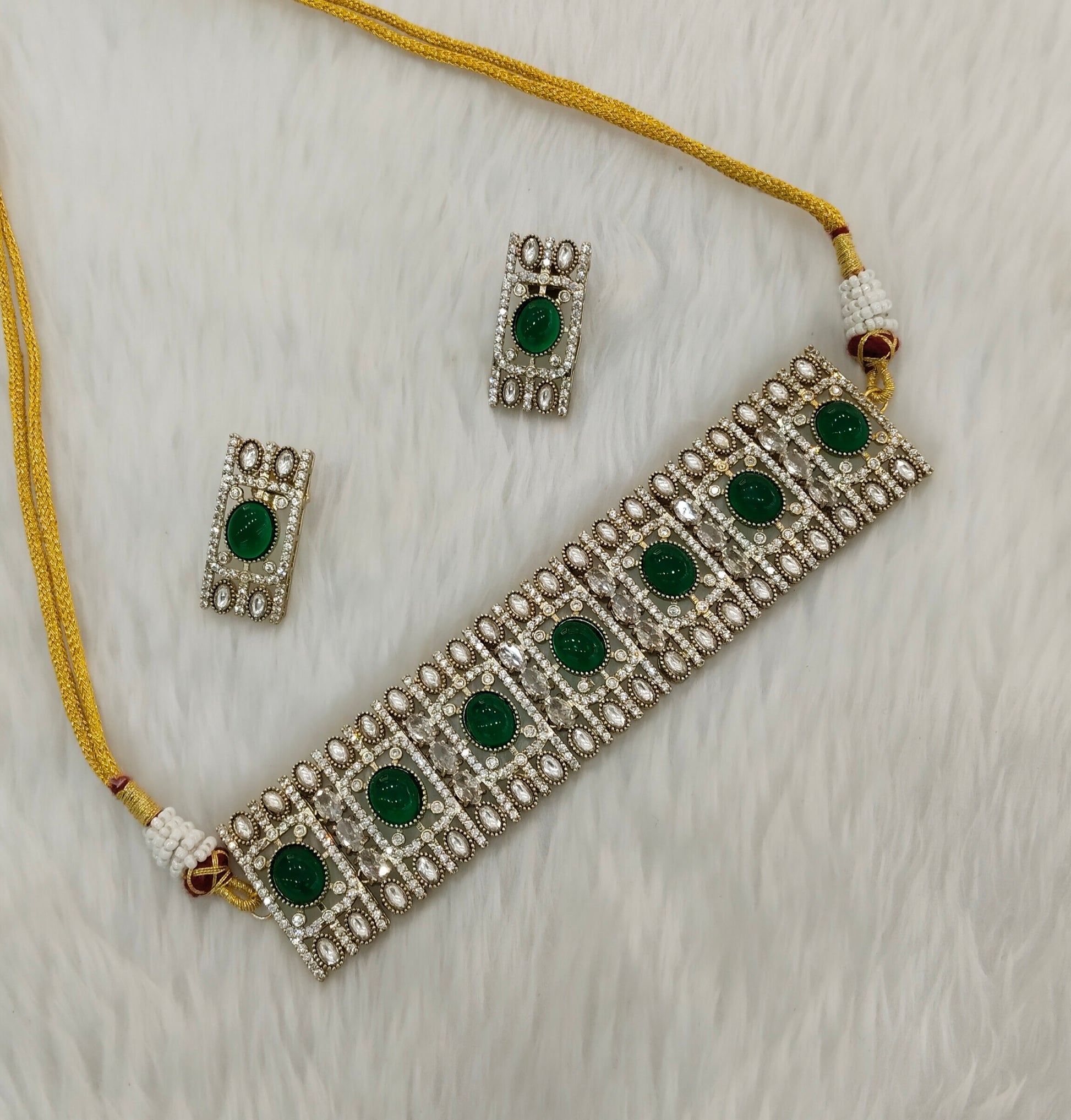 Green Gold Moissanite Kundan Choker Indian Jewellery Striker Set
