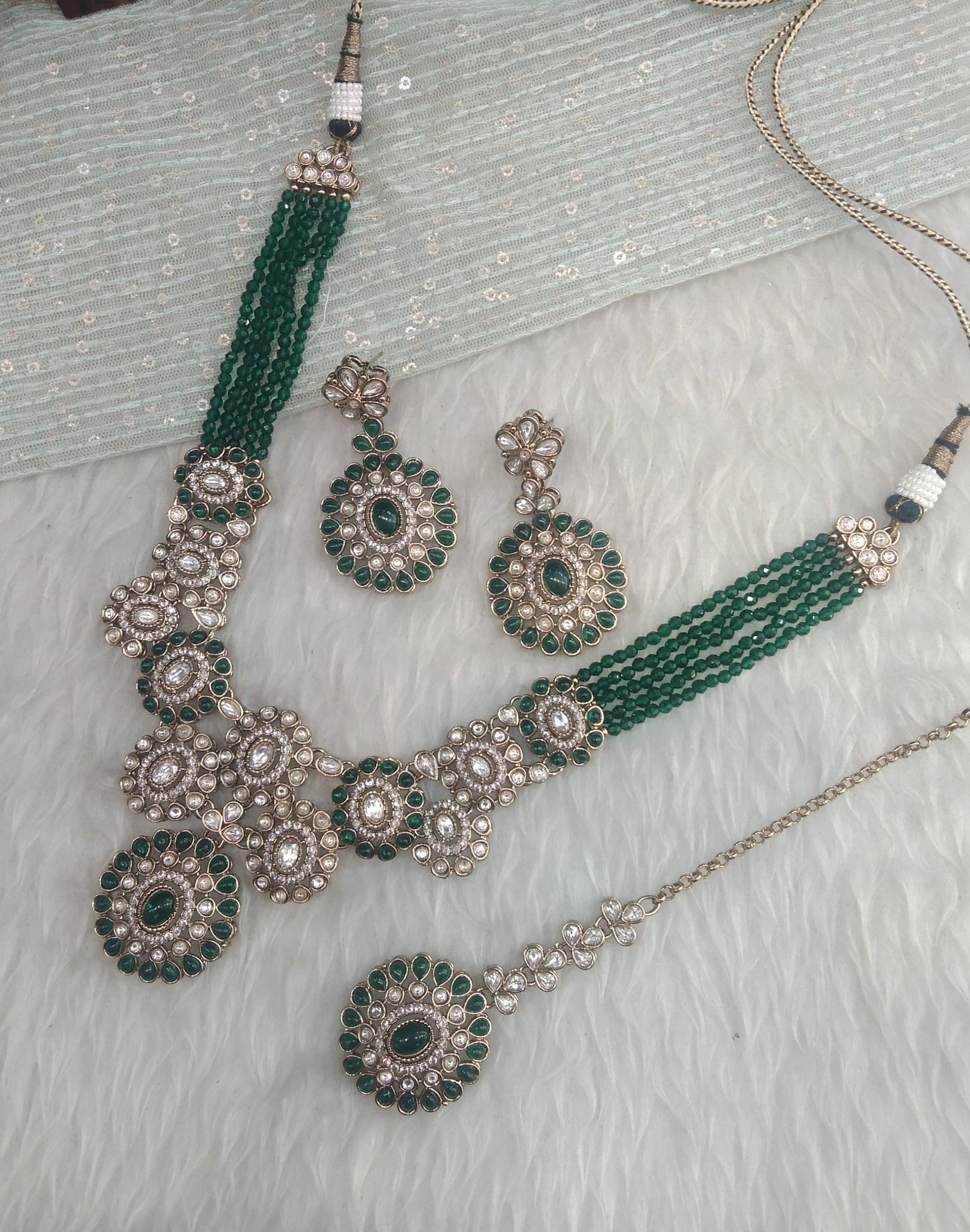Green Gold Moissanite Kundan Necklace Indian Jewellery Manddy Set