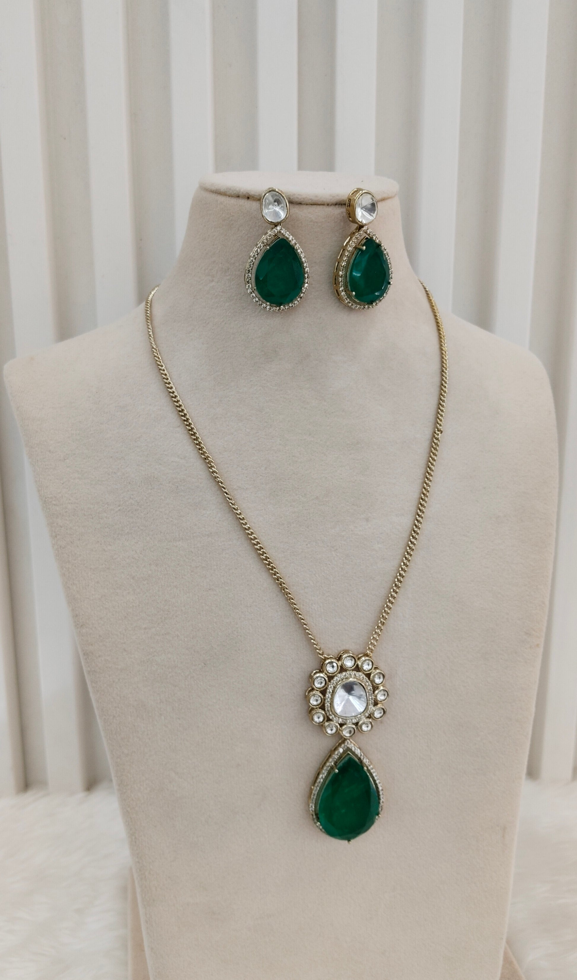 Green Gold Moissanite Kundan Necklace Indian Jewellery Solis Chain Set