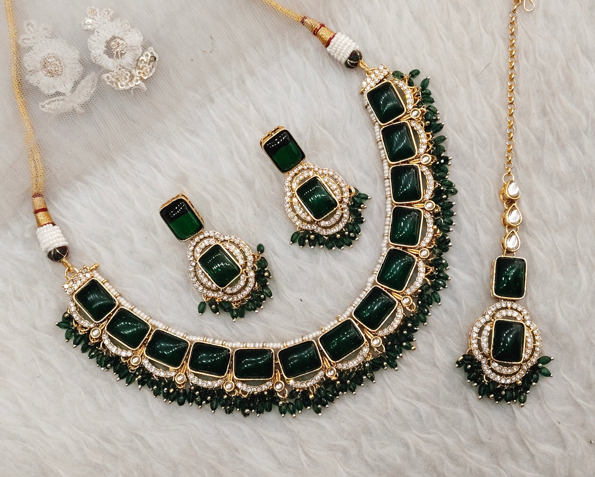 Green Gold Monalisa Kundan Necklace Indian Jewellery Rock Set