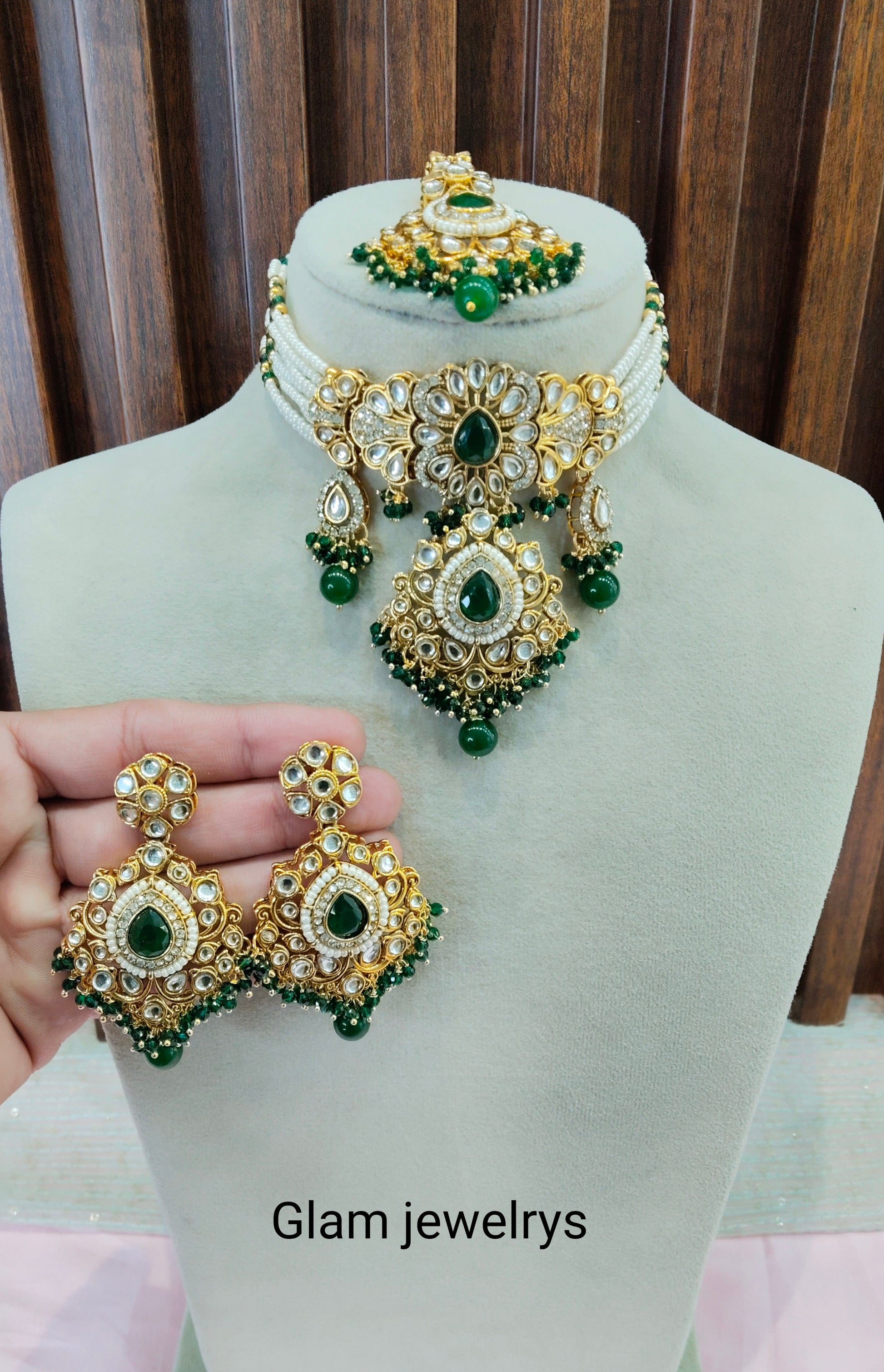 Indian Jewellery Pink Kundan Choker Set/ kundan choker hello Set