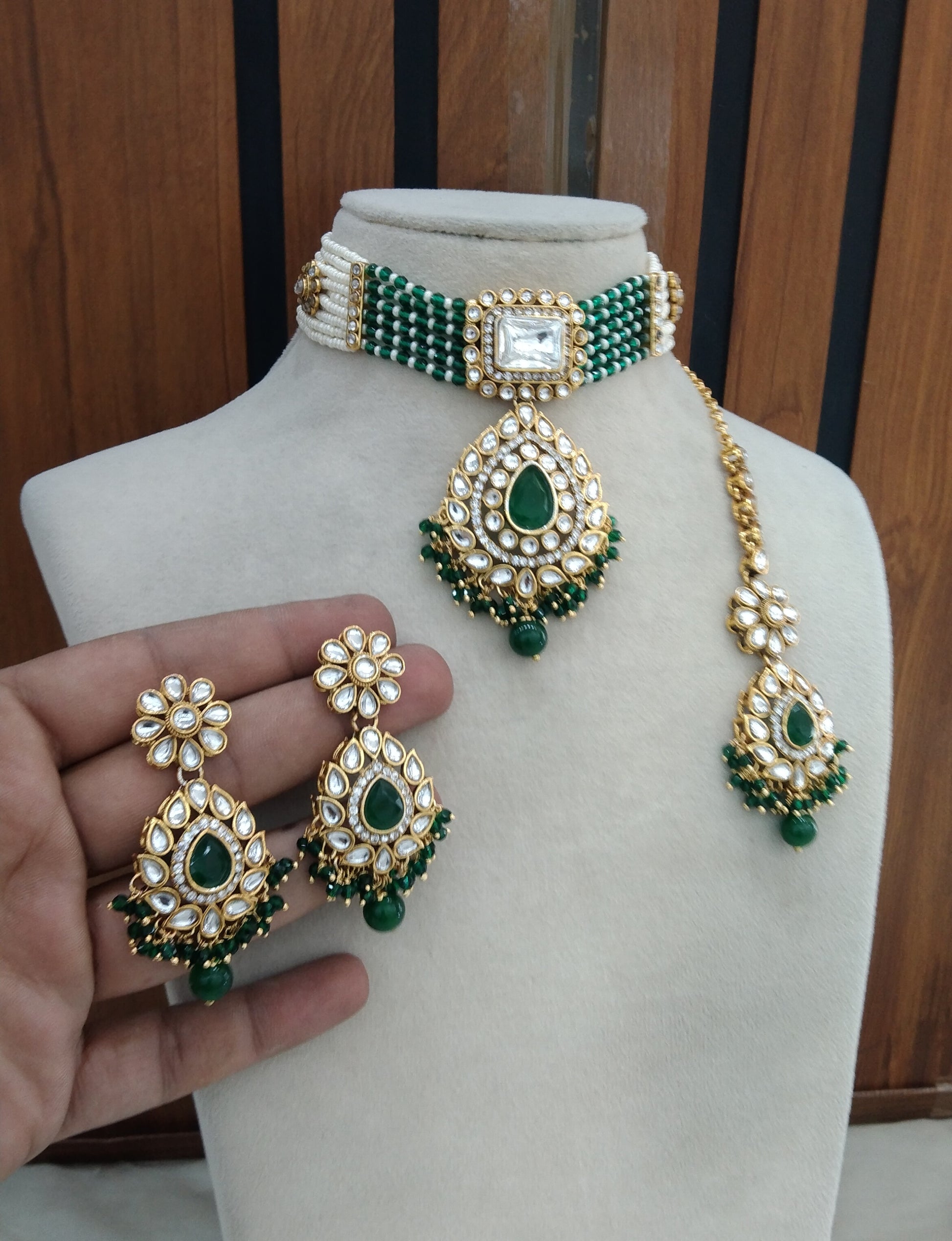 *Light Weight Gold Kundan Choker set with earrings and tikka.
