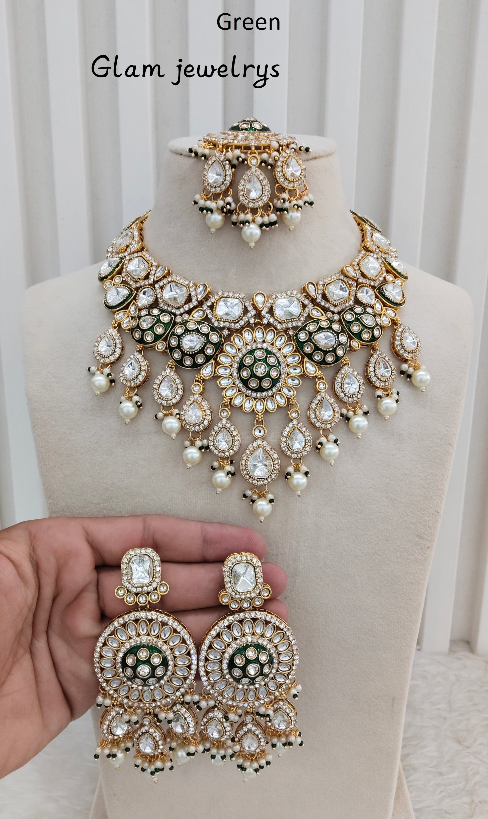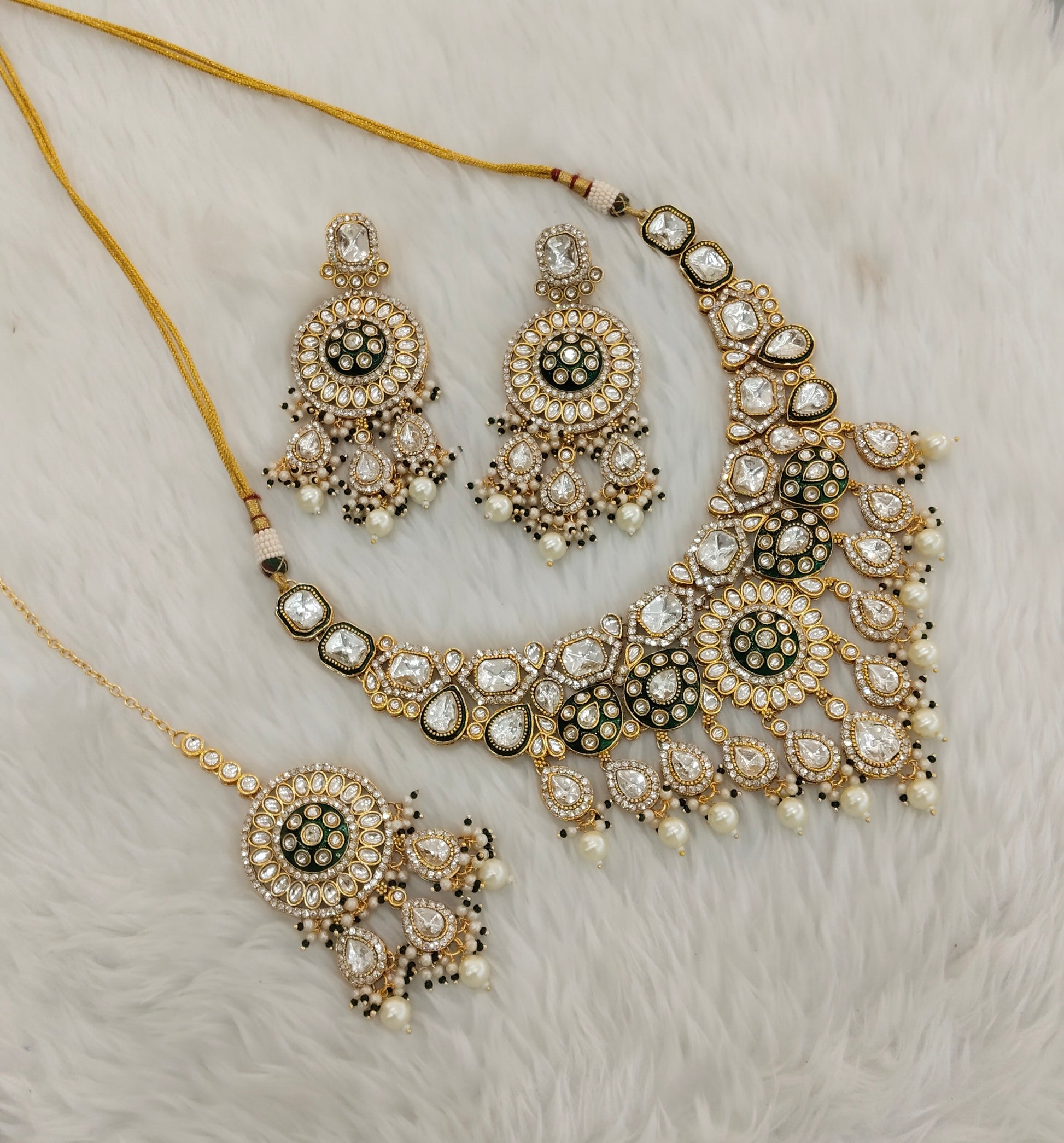 Green Kundan Necklace Indian Jewellery Brarr Set