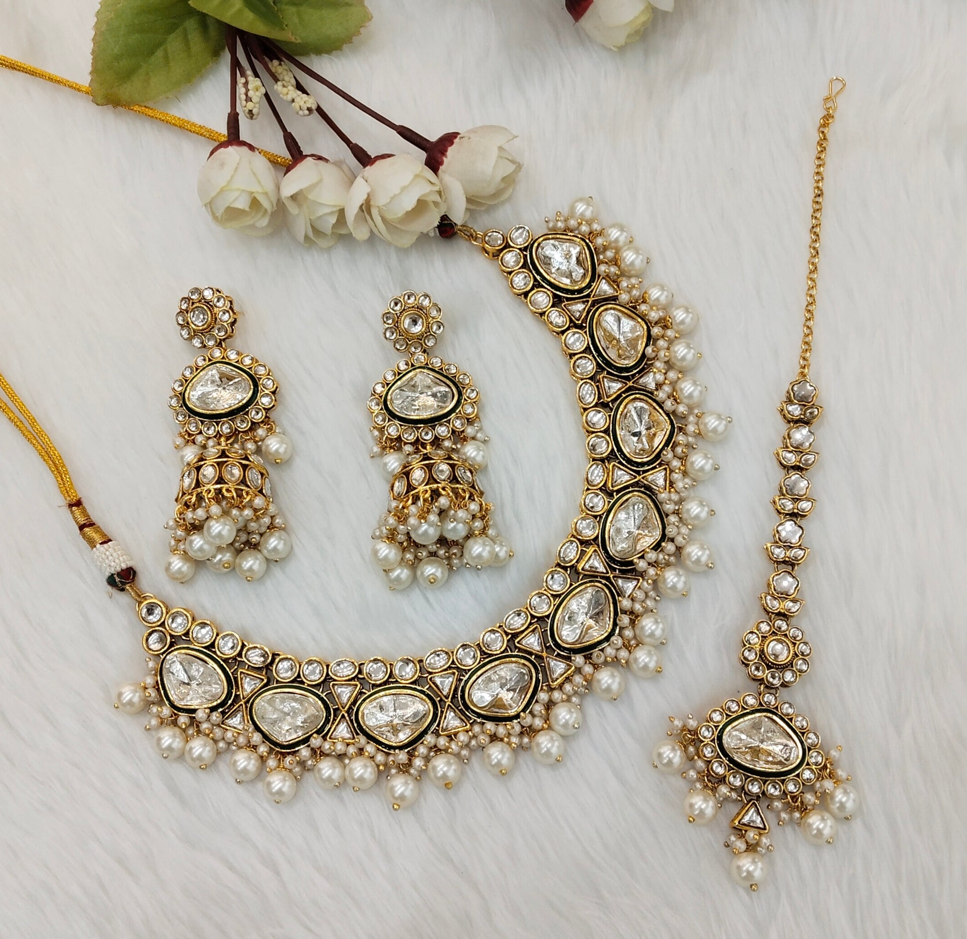 Indian Jewellery Pink Kundan Choker Set/ kundan choker hello Set