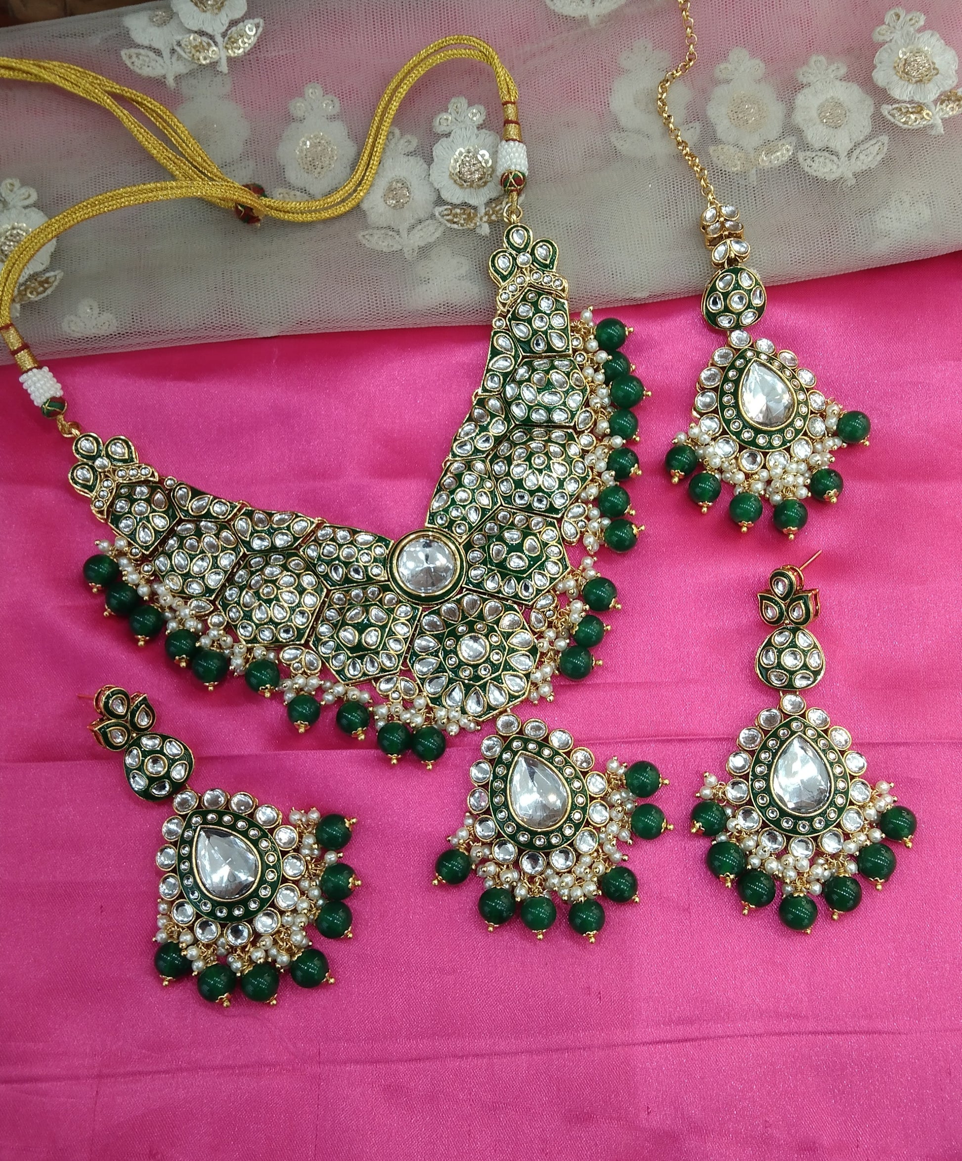 Green Kundan Necklace Indian Jewelry Like Set