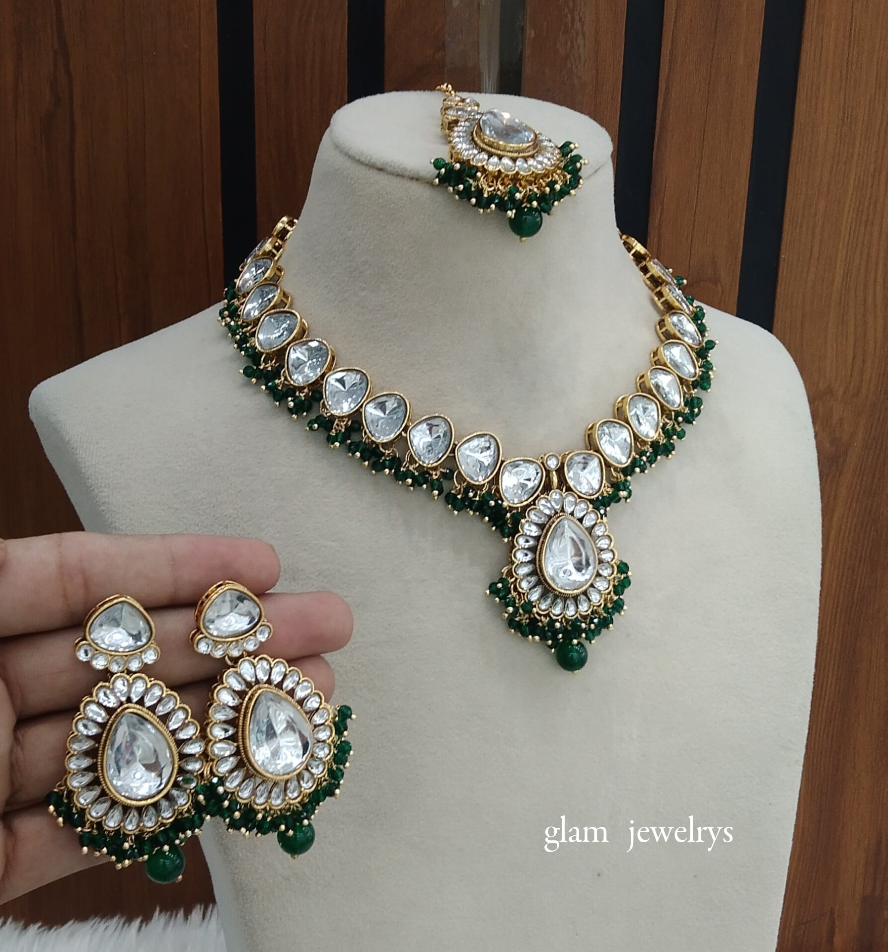 Green Kundan necklace Set/ kundan Indian jewellery kundan Uma sets