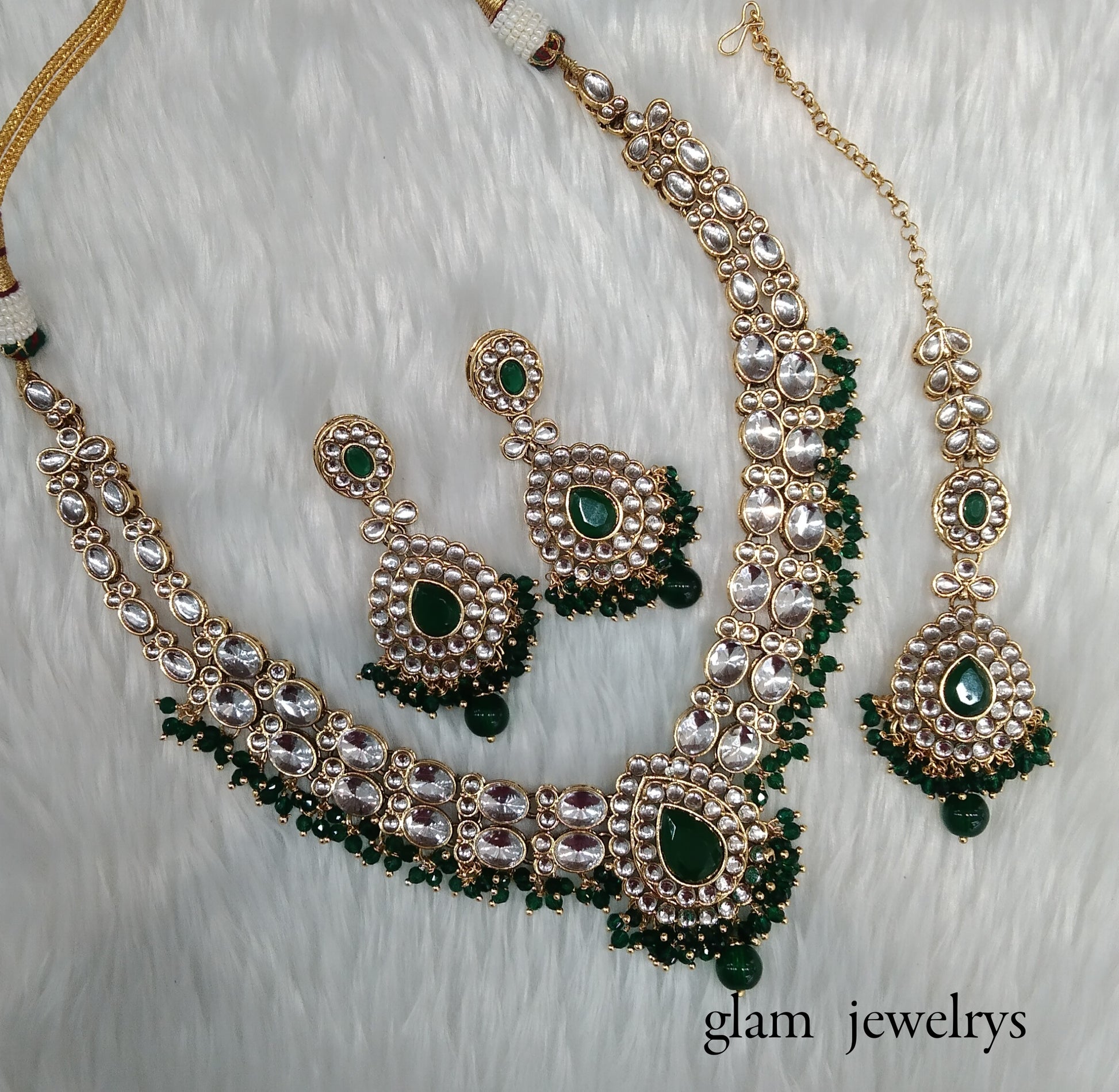 Green Kundan necklace Set/ kundan Indian jewelry kundan Khus sets