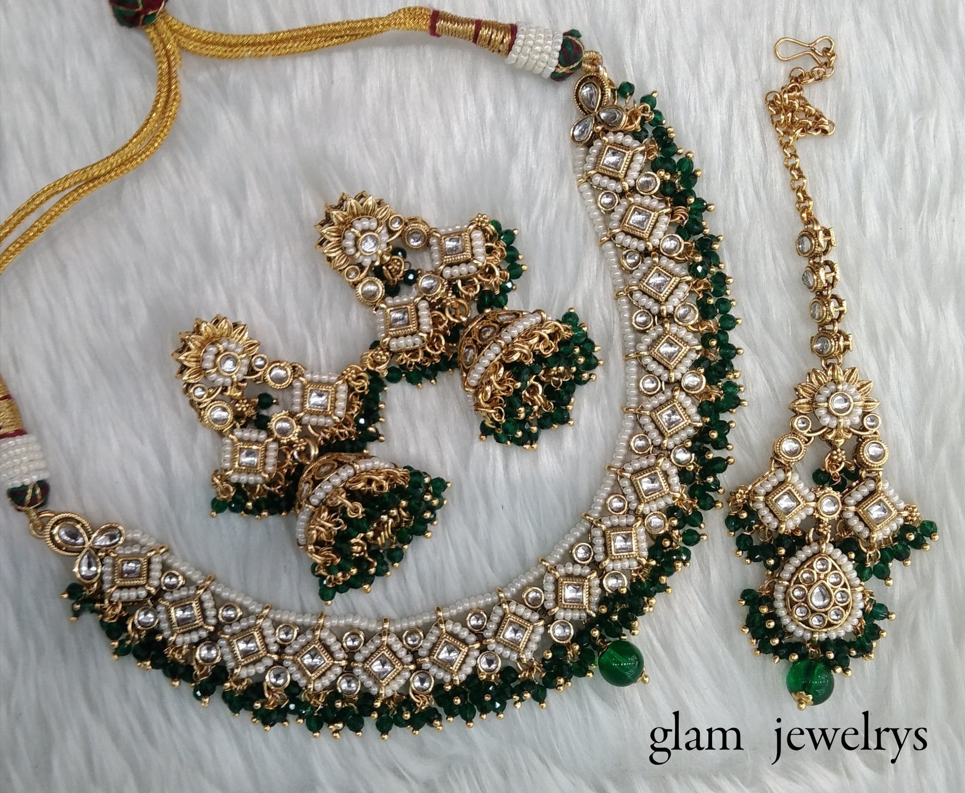 Green Kundan necklace Set/ kundan Indian jewelry kundan Rajveer sets