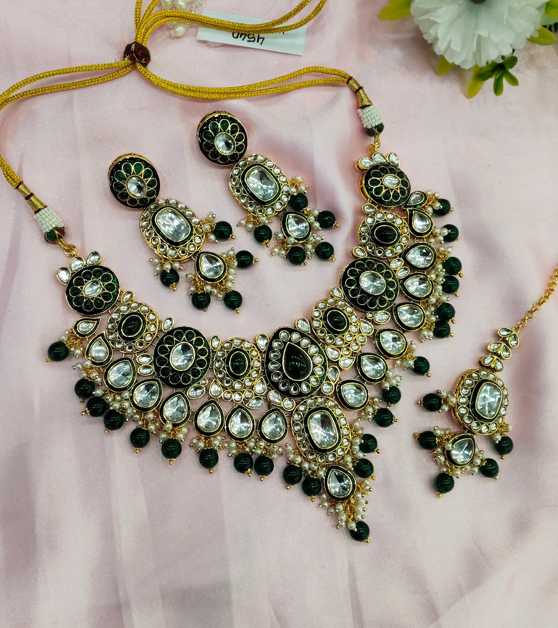 Green Meenakari Kundan Necklace Indian Jewelry Aman Set