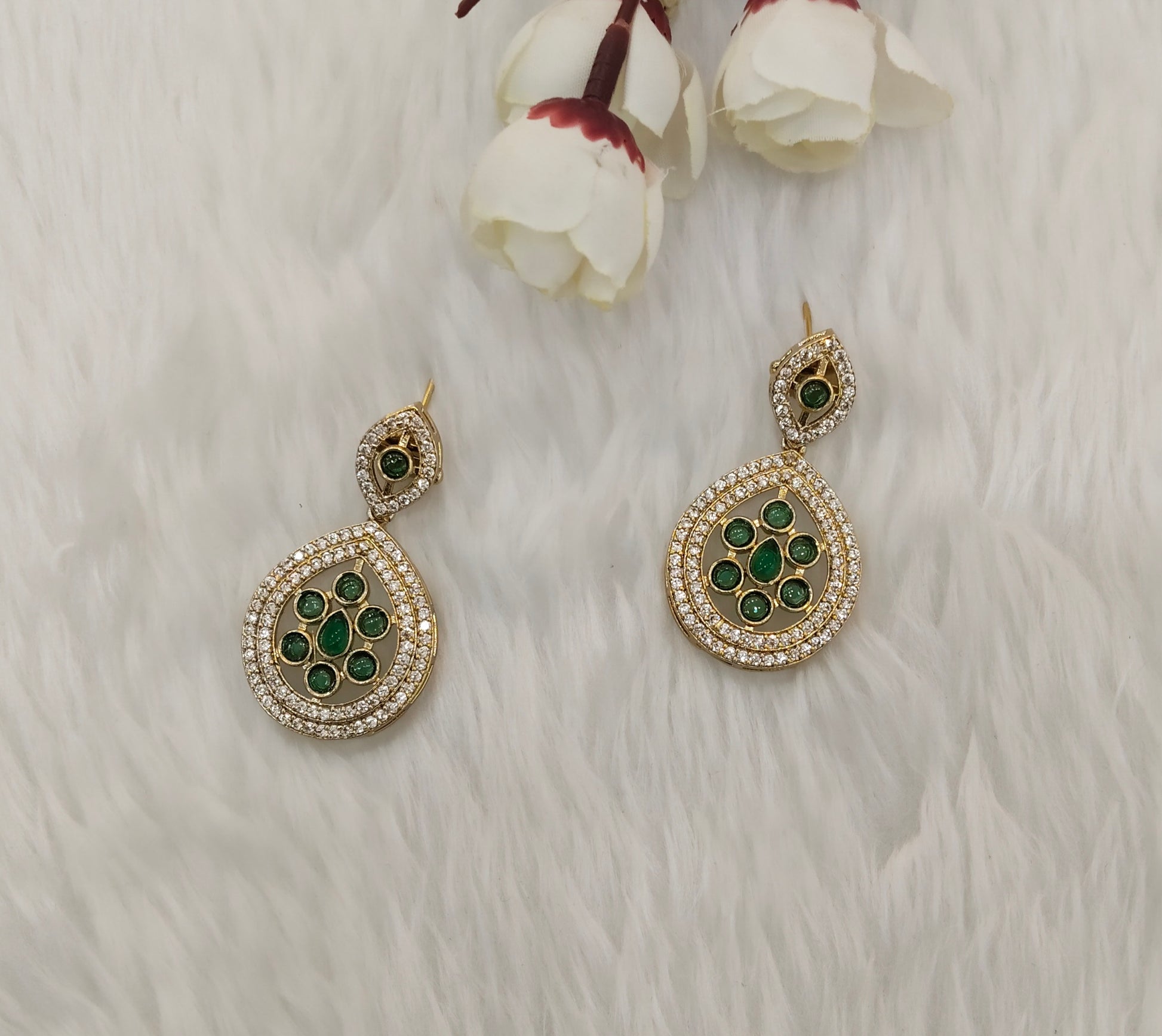 Green Moissanite Kundan Bollywood Indian Jombi Earrings