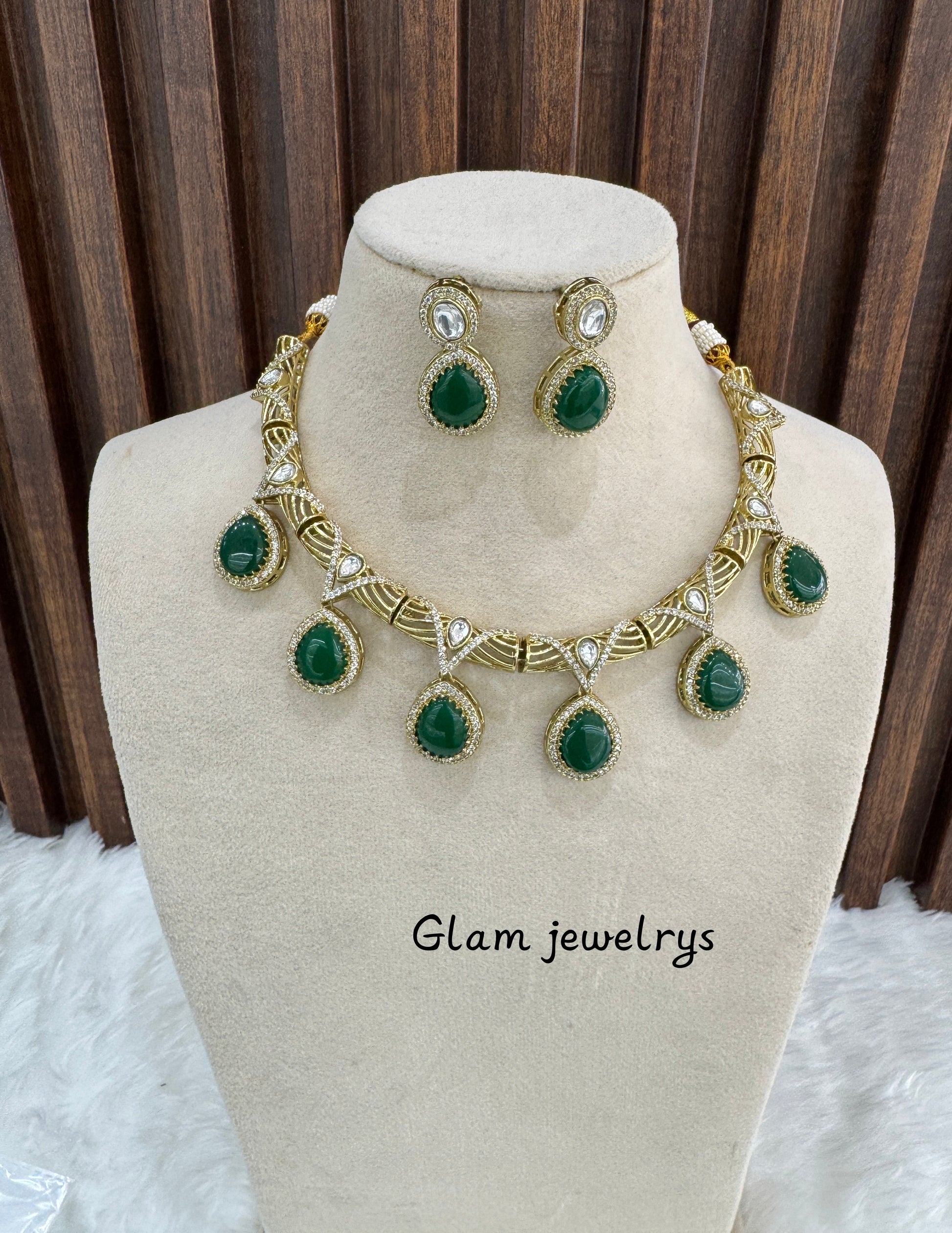 Pastel Green Bridal Necklace Jewellery Kadir Set