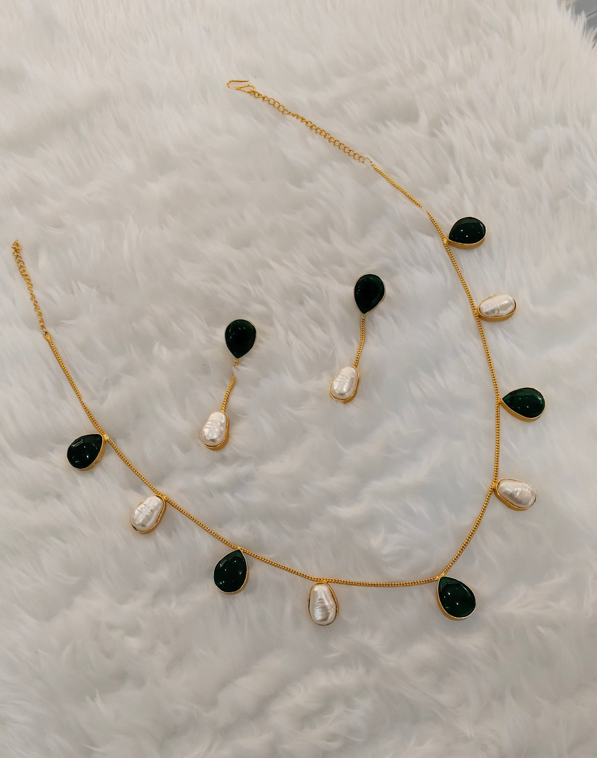 Green Mother Of Pearl Stone Necklace Indian Jewellery Sagge Set