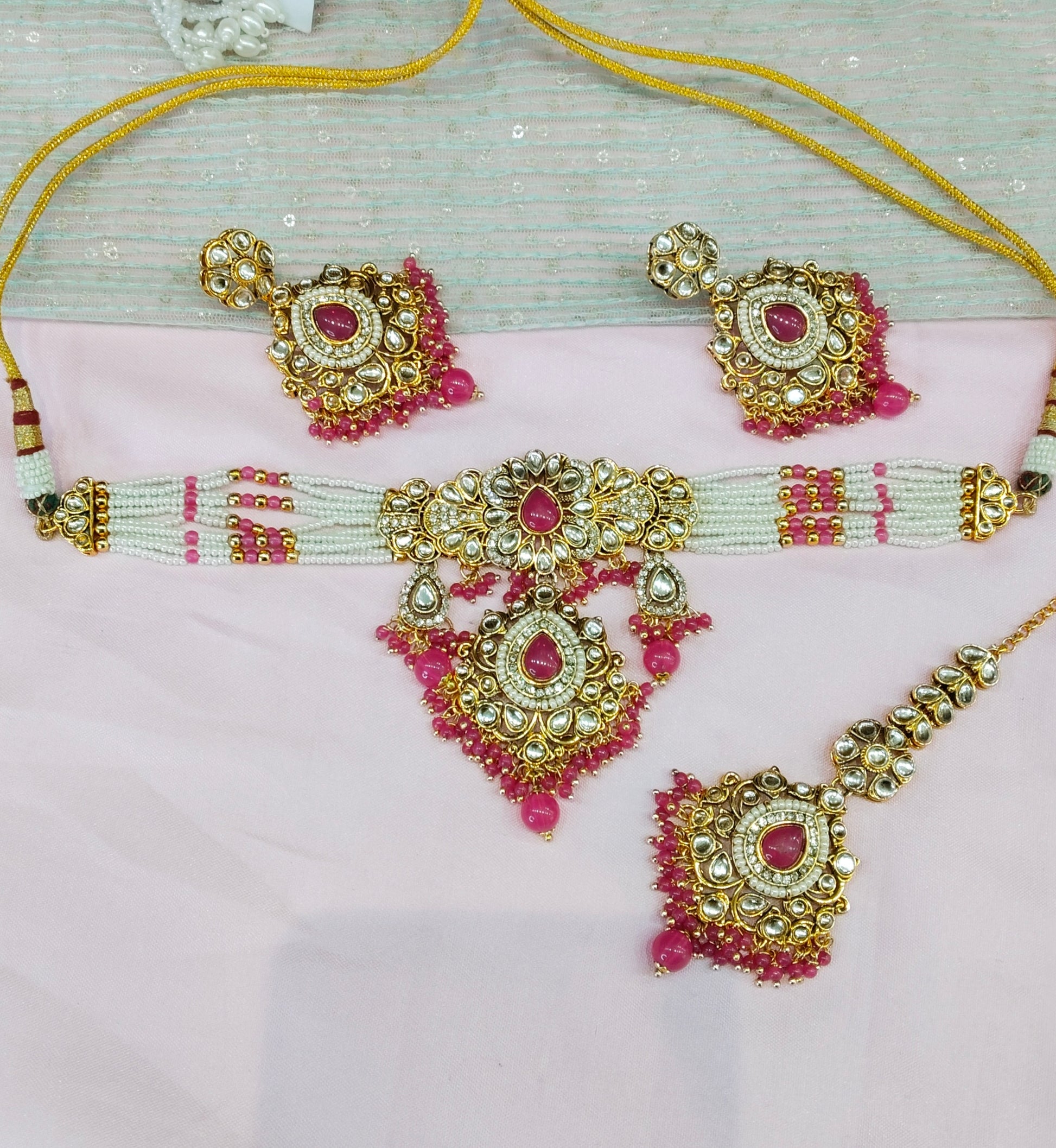 Hot Pink Kundan Choker Indian Jewellery Vanca Set