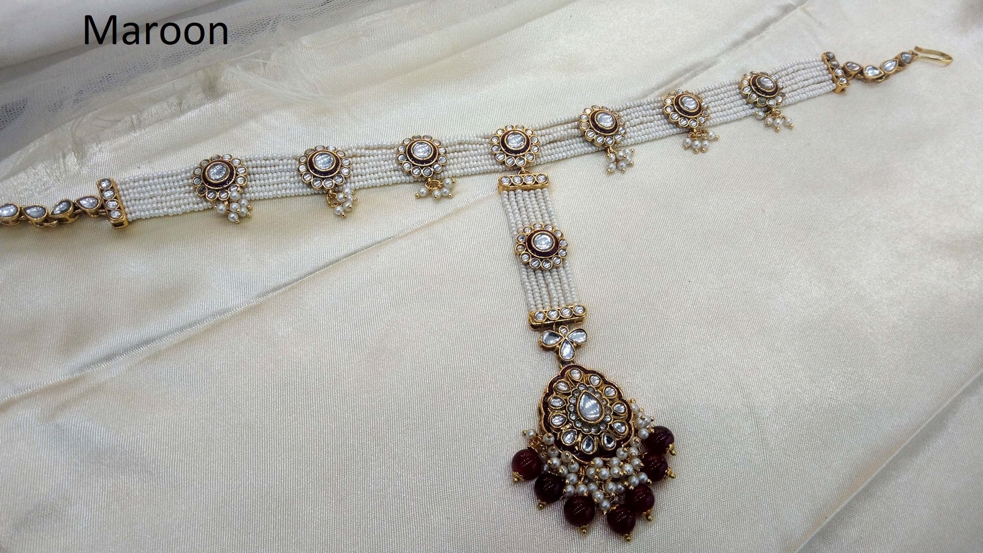 Indian Maroon Matha patti Head Piece Tikka Hair chain/ Indian Head Jewellery/