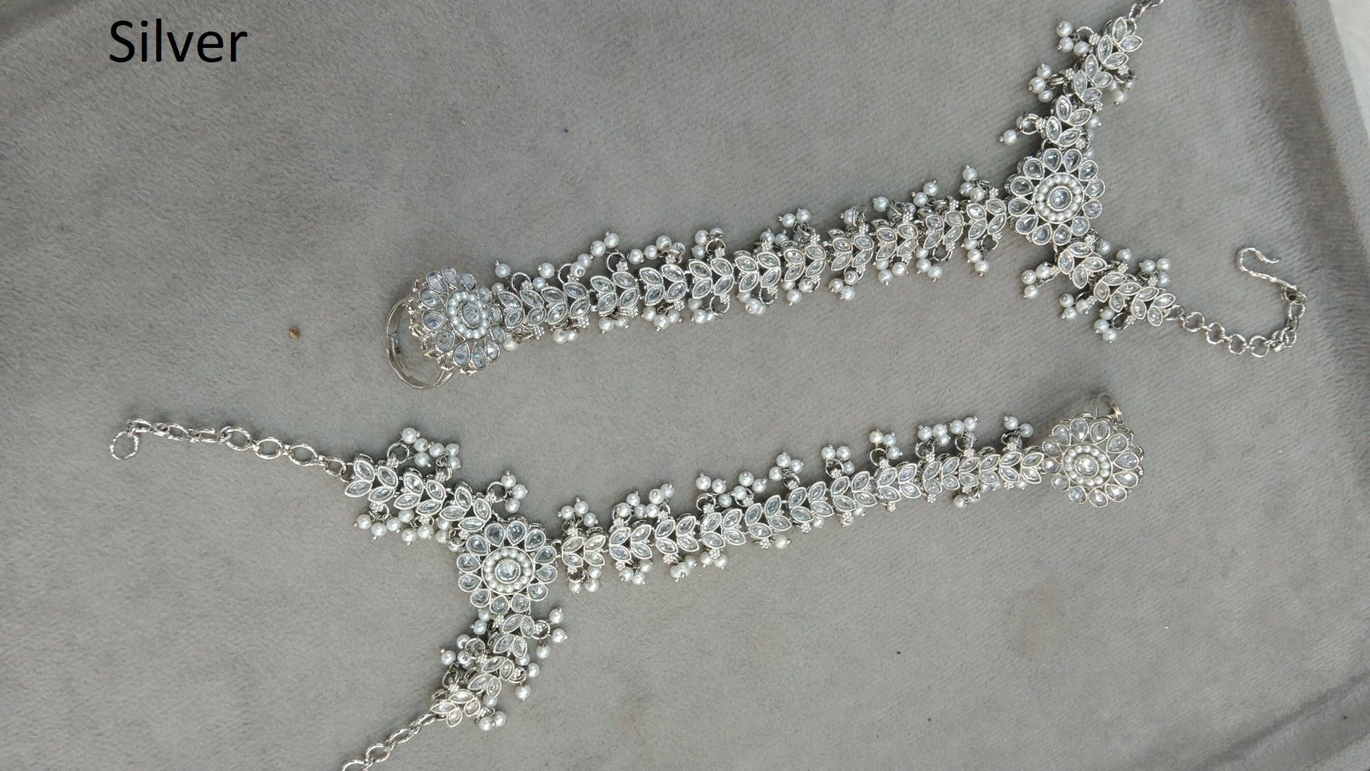 Indian Hand Bracelets Silver Bridal pair Finger ring Panja Jewellery