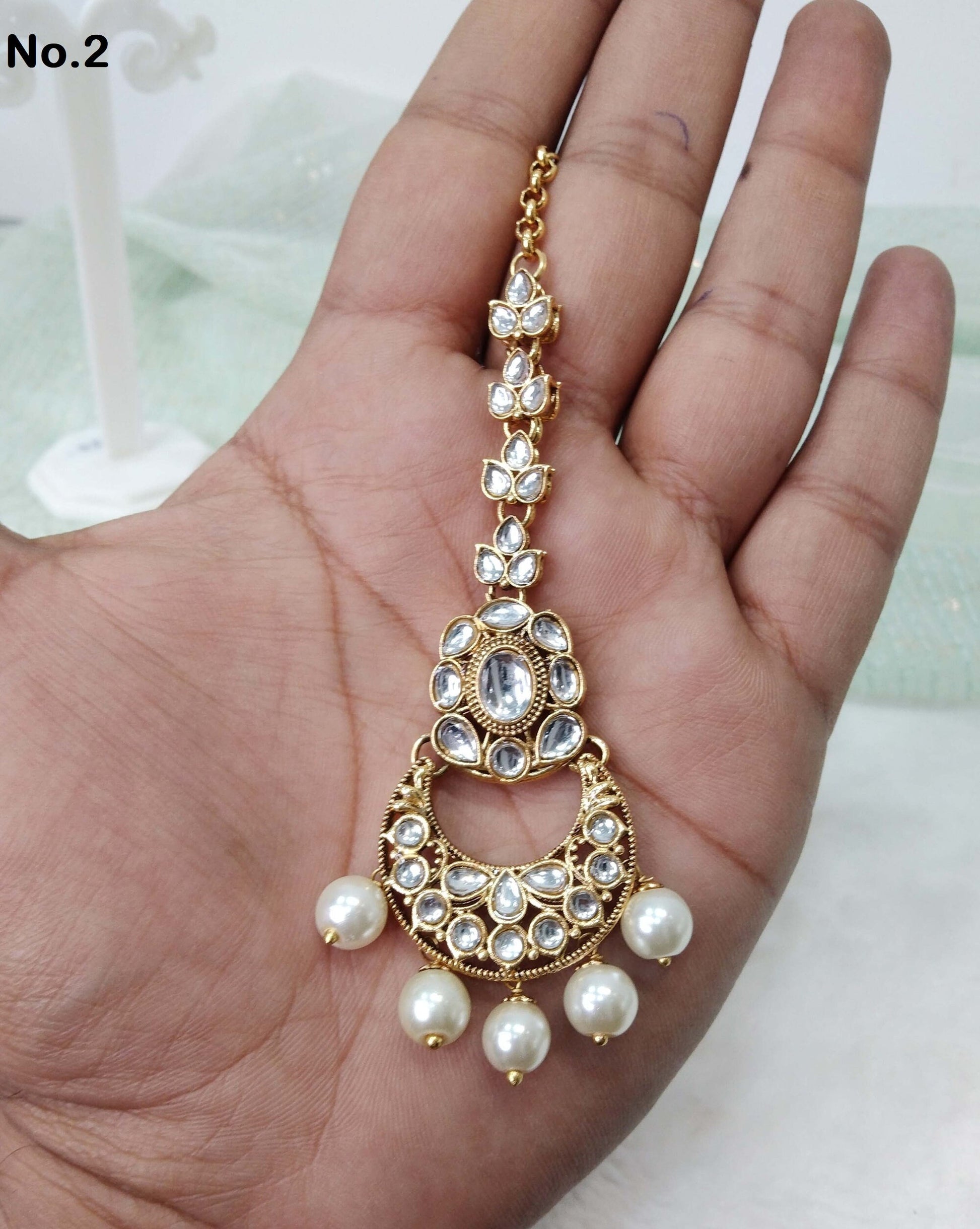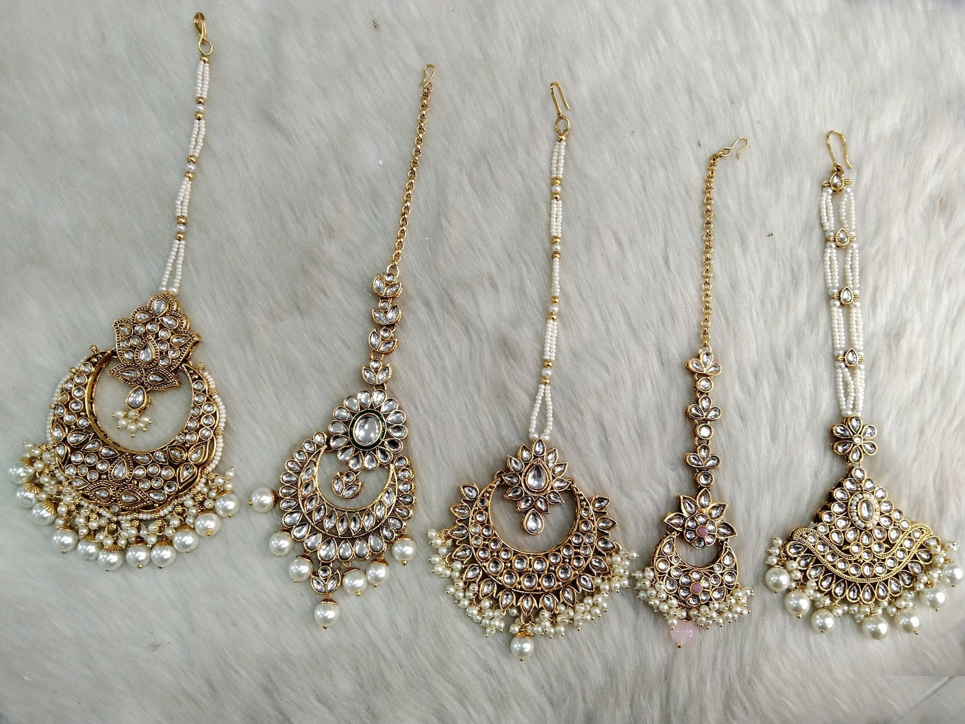 Indian Headpiece Tikka Jewellery/Gold kundan Maang Tikka /Bollywood Round Hair Headpiece/ Punjabi Indian Jewellery/Kundan Tikka