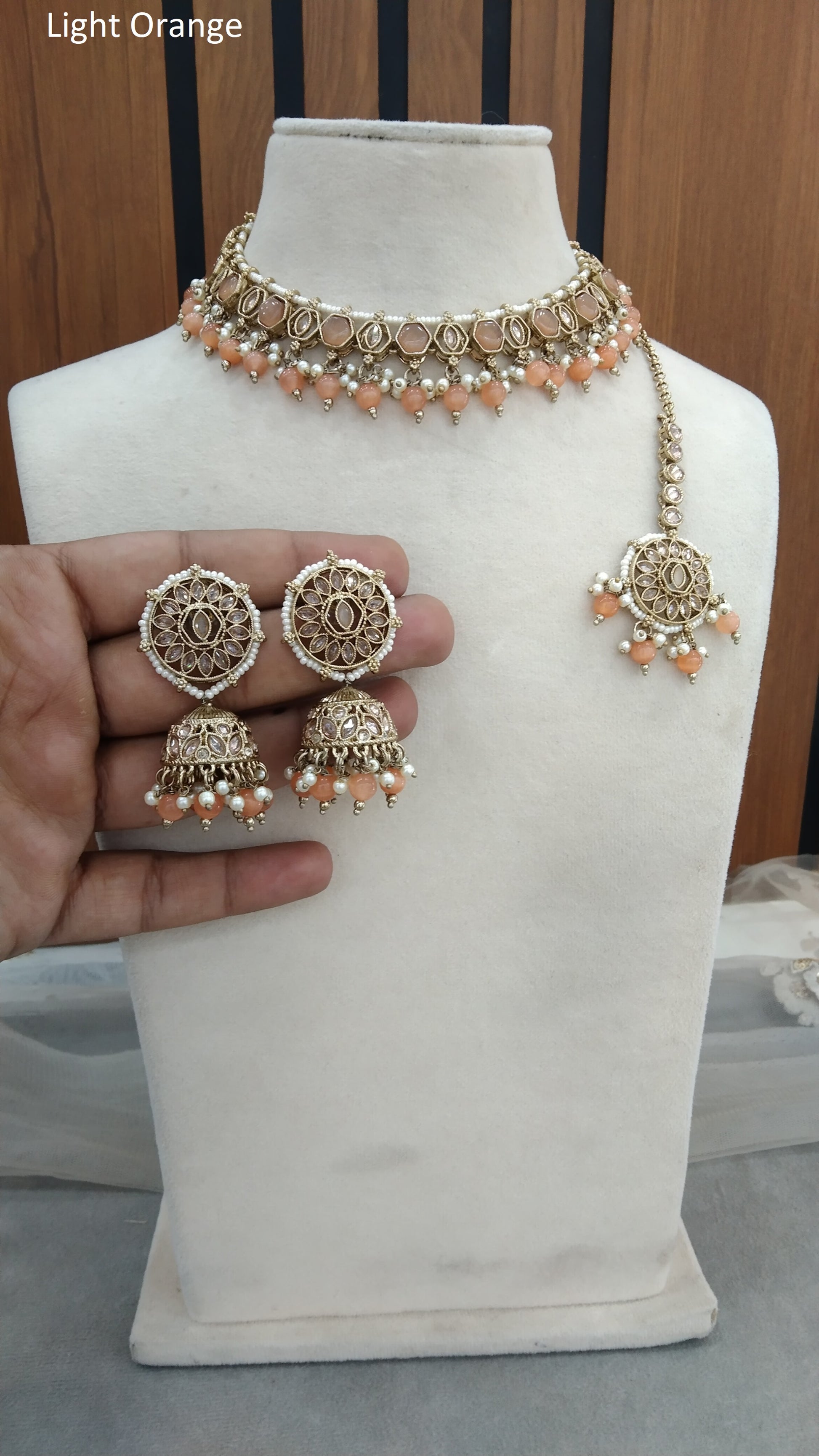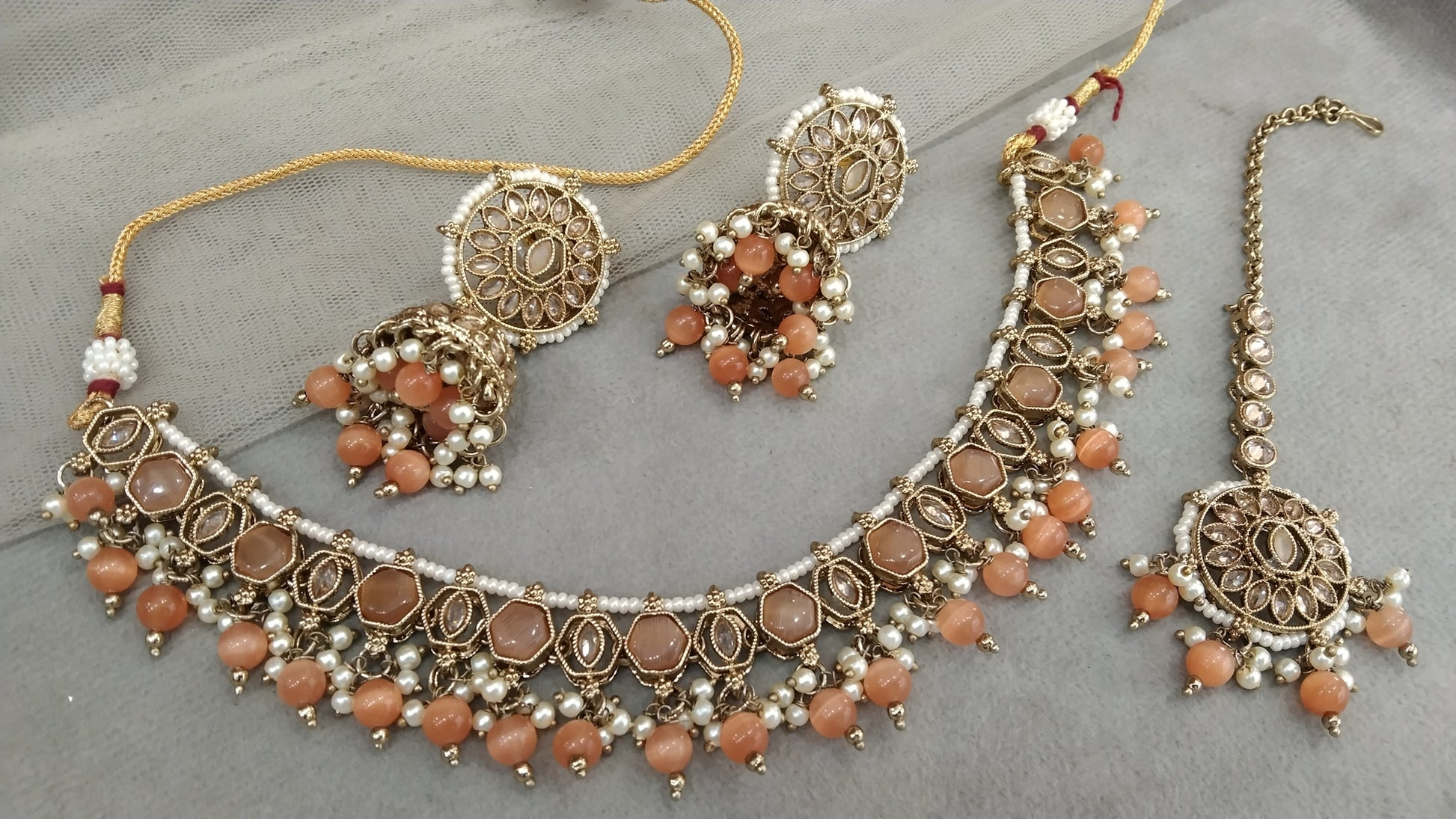 Indian Jewellery Antique Gold light orange necklace Tikka Set/ Ekta