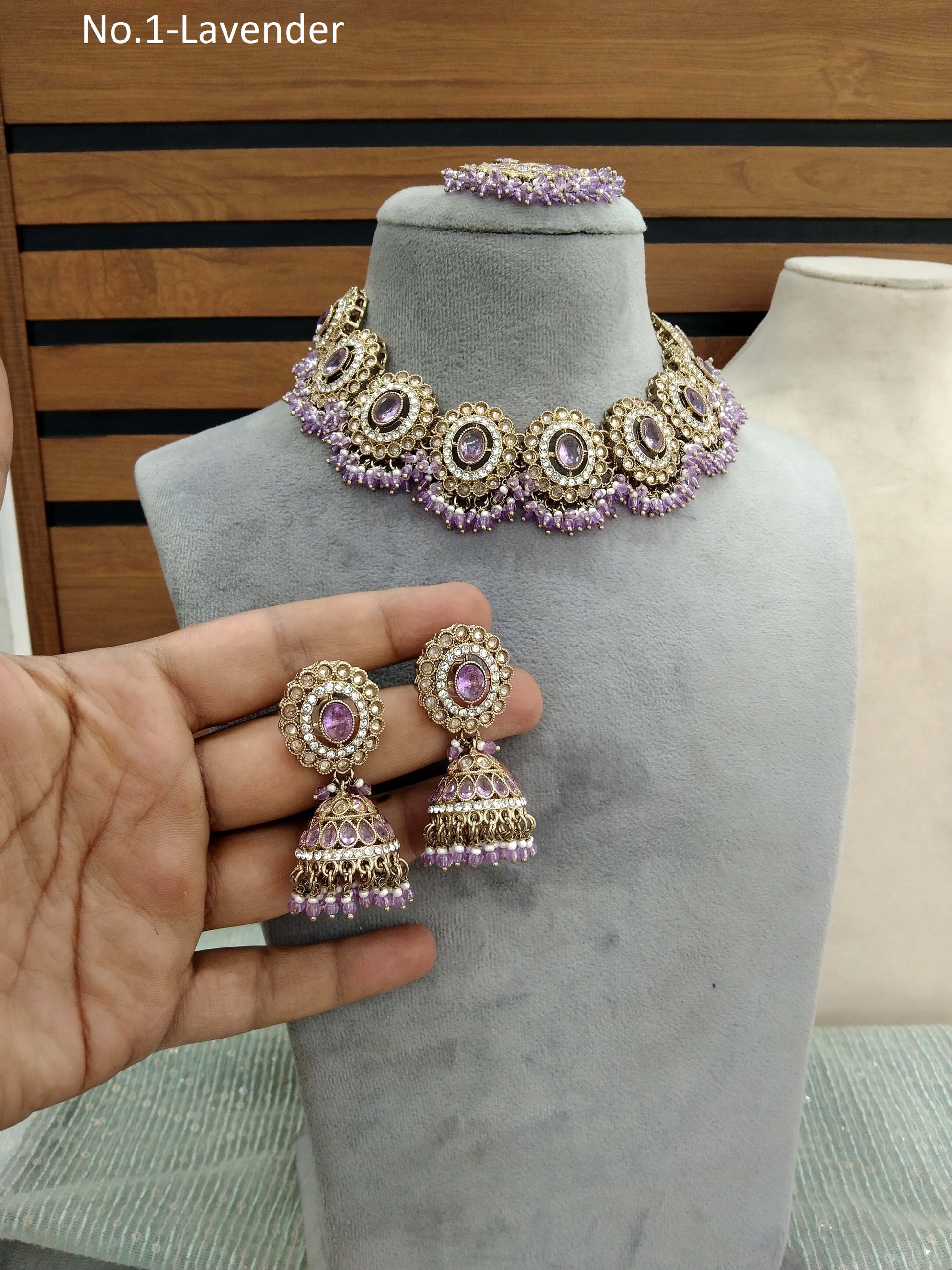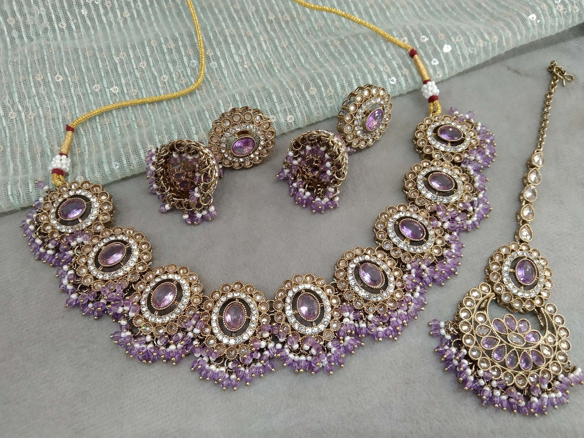 Indian Jewellery/Antique Lavender Gold Indian Jewellery Set Twisha