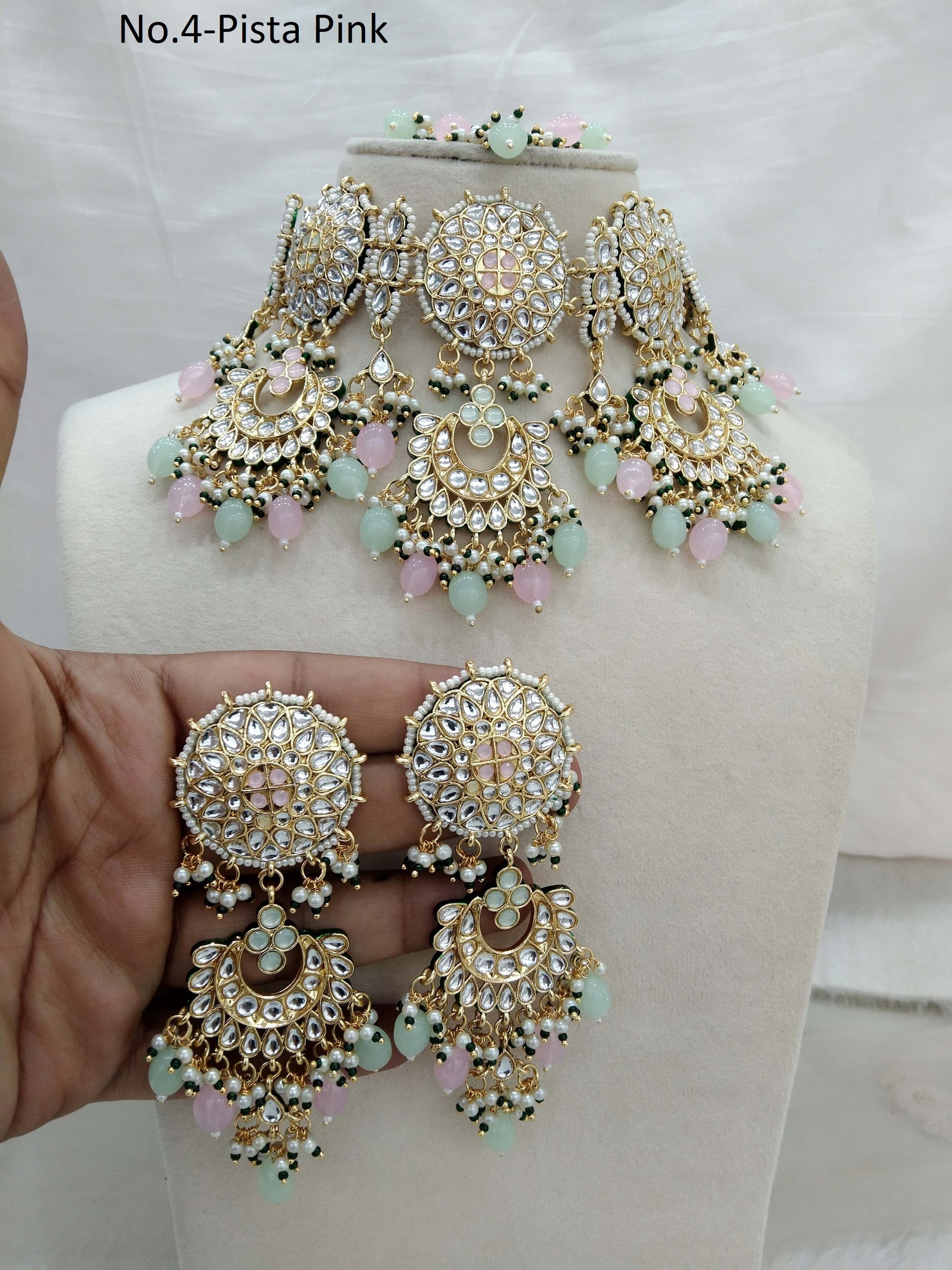 Indian Jewellery Pink Kundan Choker Set/ kundan choker hello Set