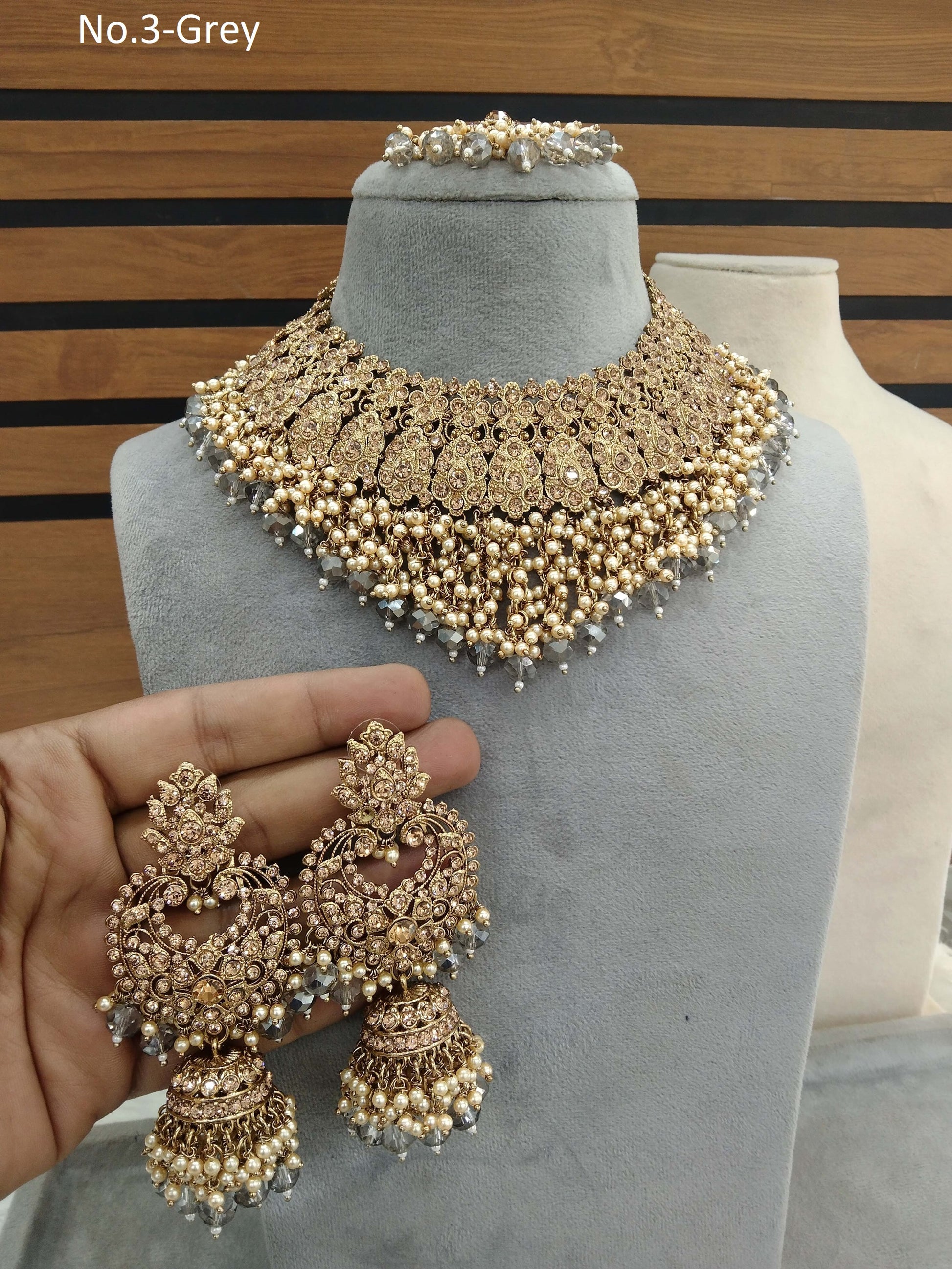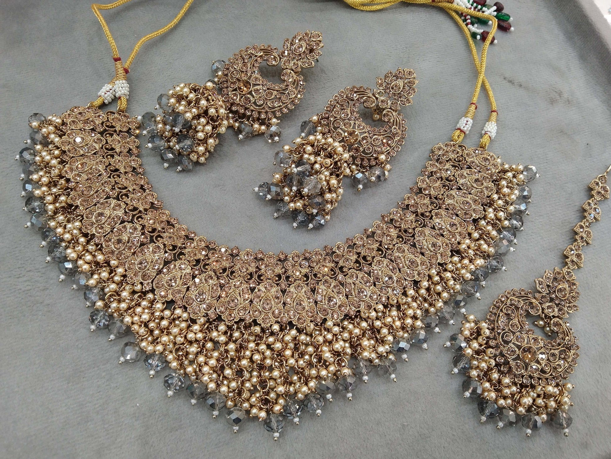Indian Jewellery/Semi bridal gold Grey jewellery necklace shallu set